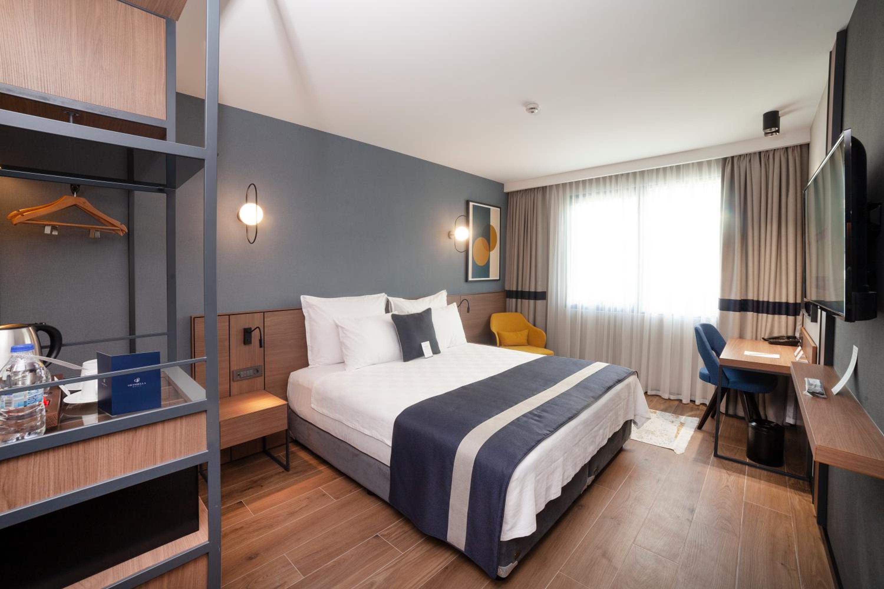 Comfortable Rooms with Modern Features: Experience ultimate comfort in our air-conditioned rooms furnished with a desk, kettle, minibar, flat-screen TV, and more.