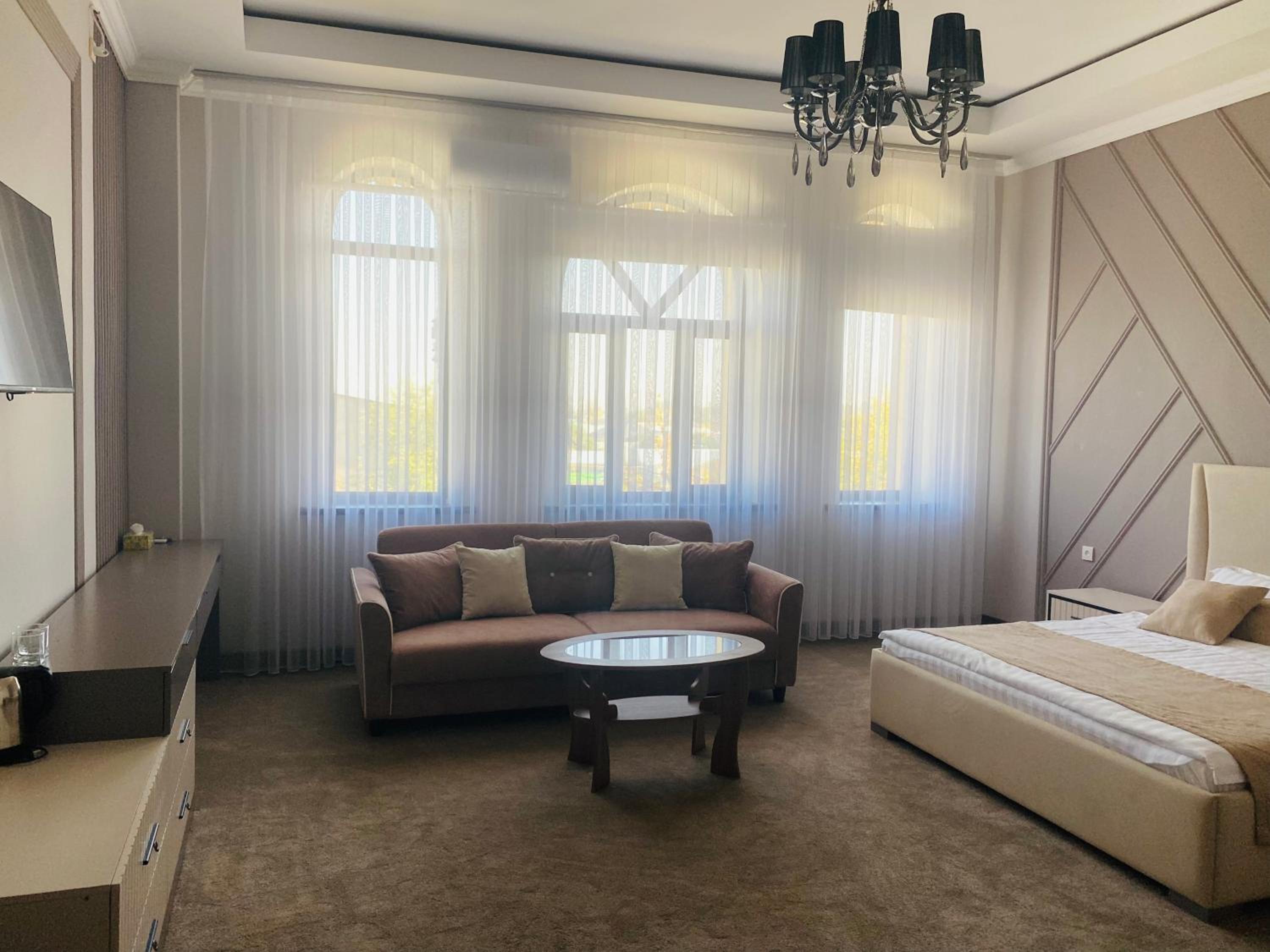 Стоимость номера для города Тараз высокая. Завтрак полностью удовлетворил наши потребности. Однако при такой стоимости номера, можно было завтрак сделать более разнообразным.