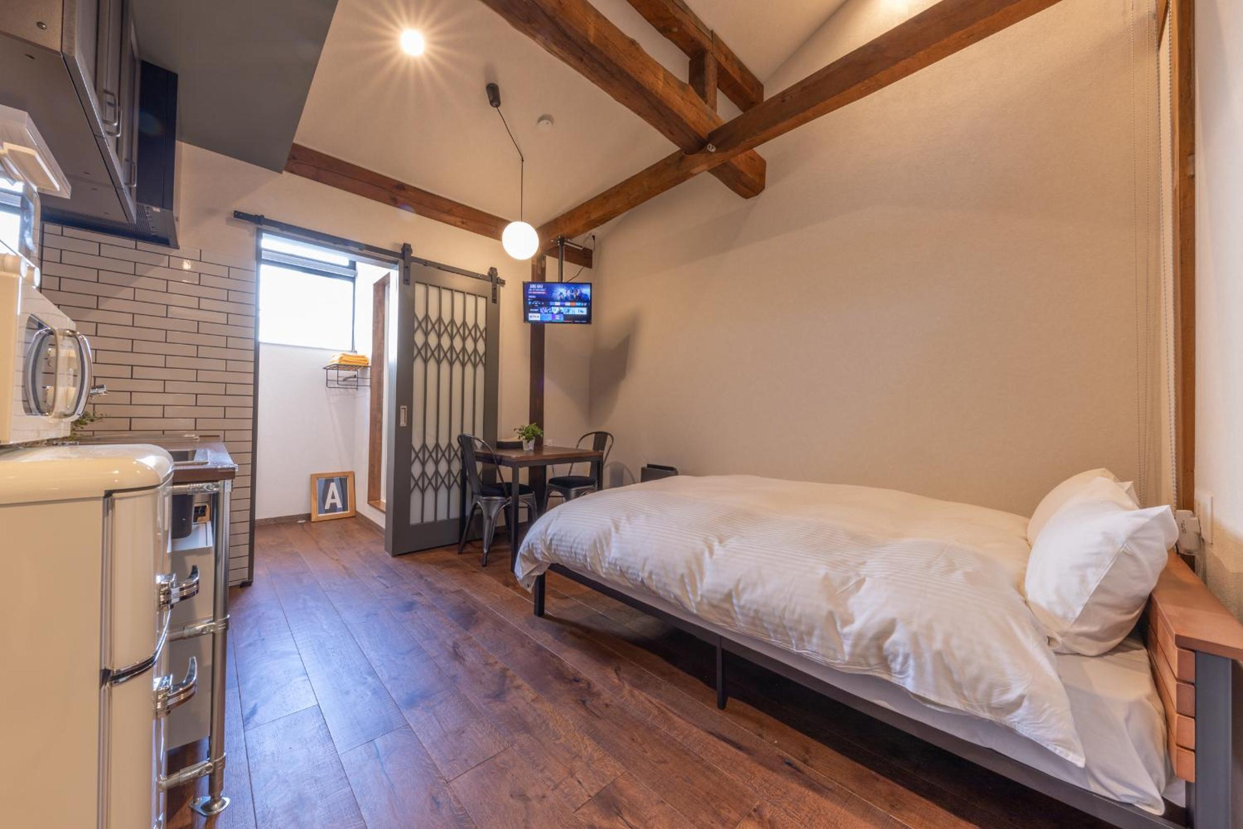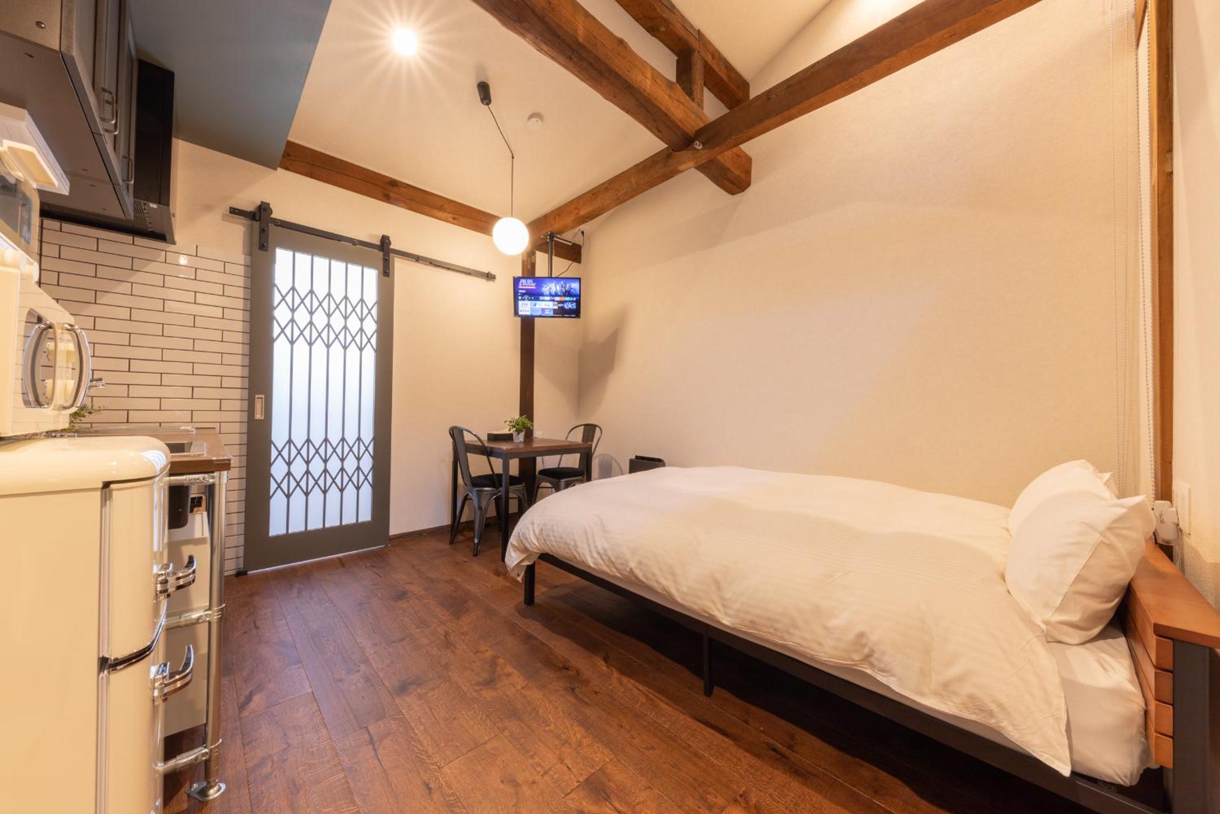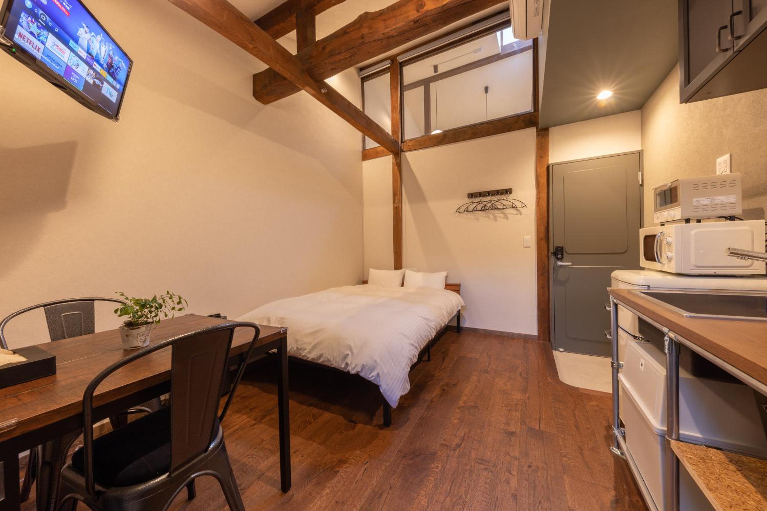 The double room/apartment was a little small. There is no space to put luggage (similar to other places in Japan) and there was no bedside space nor bedside tables. This was manageable for a couple of nights. The benefits, price, and location outweighed the small inconvenience. Some people may find the steep stairs difficult to manage with suitcases. Coffee sachets would be greatly appreciated.