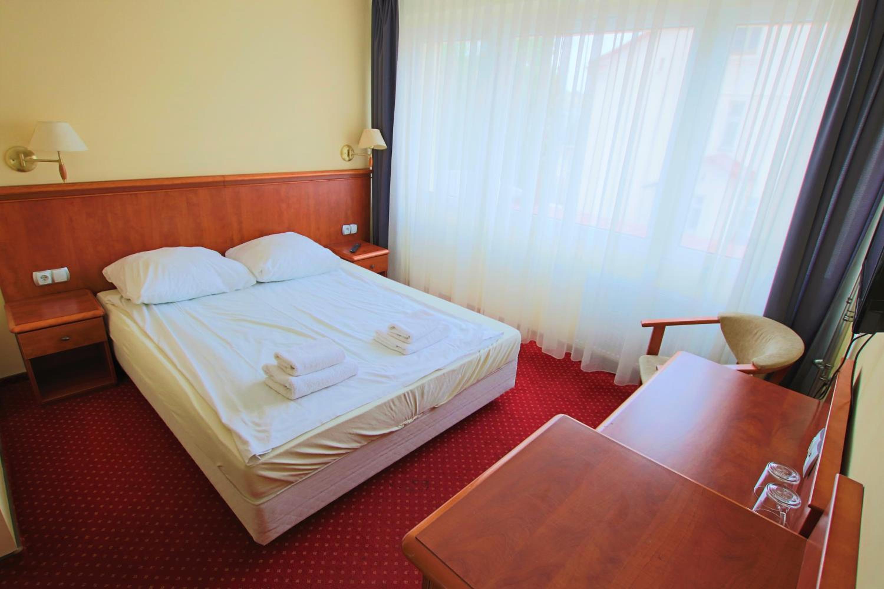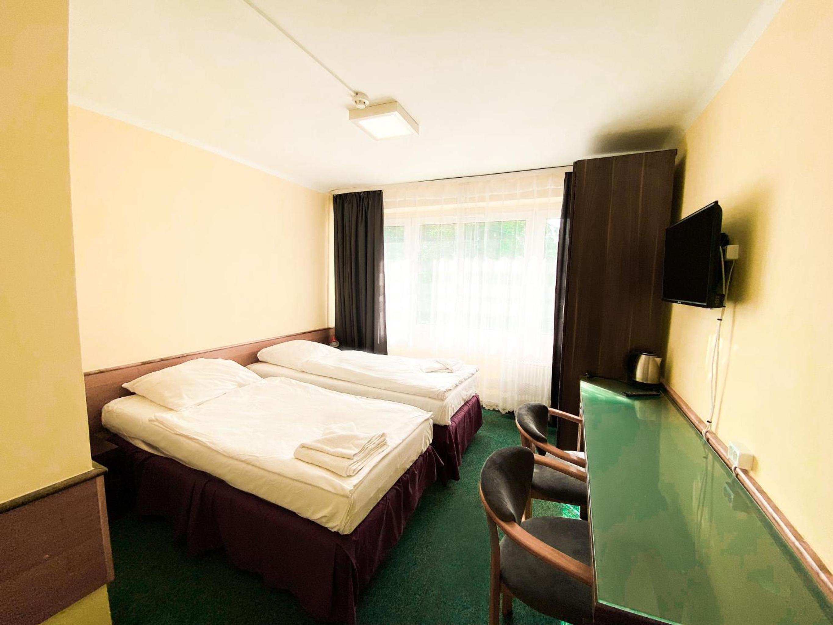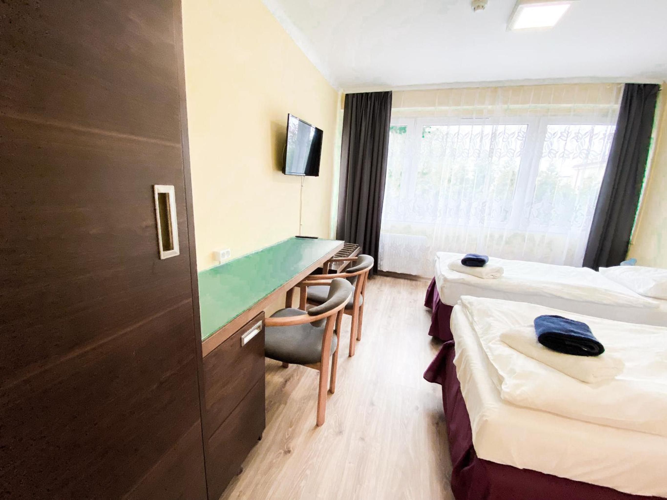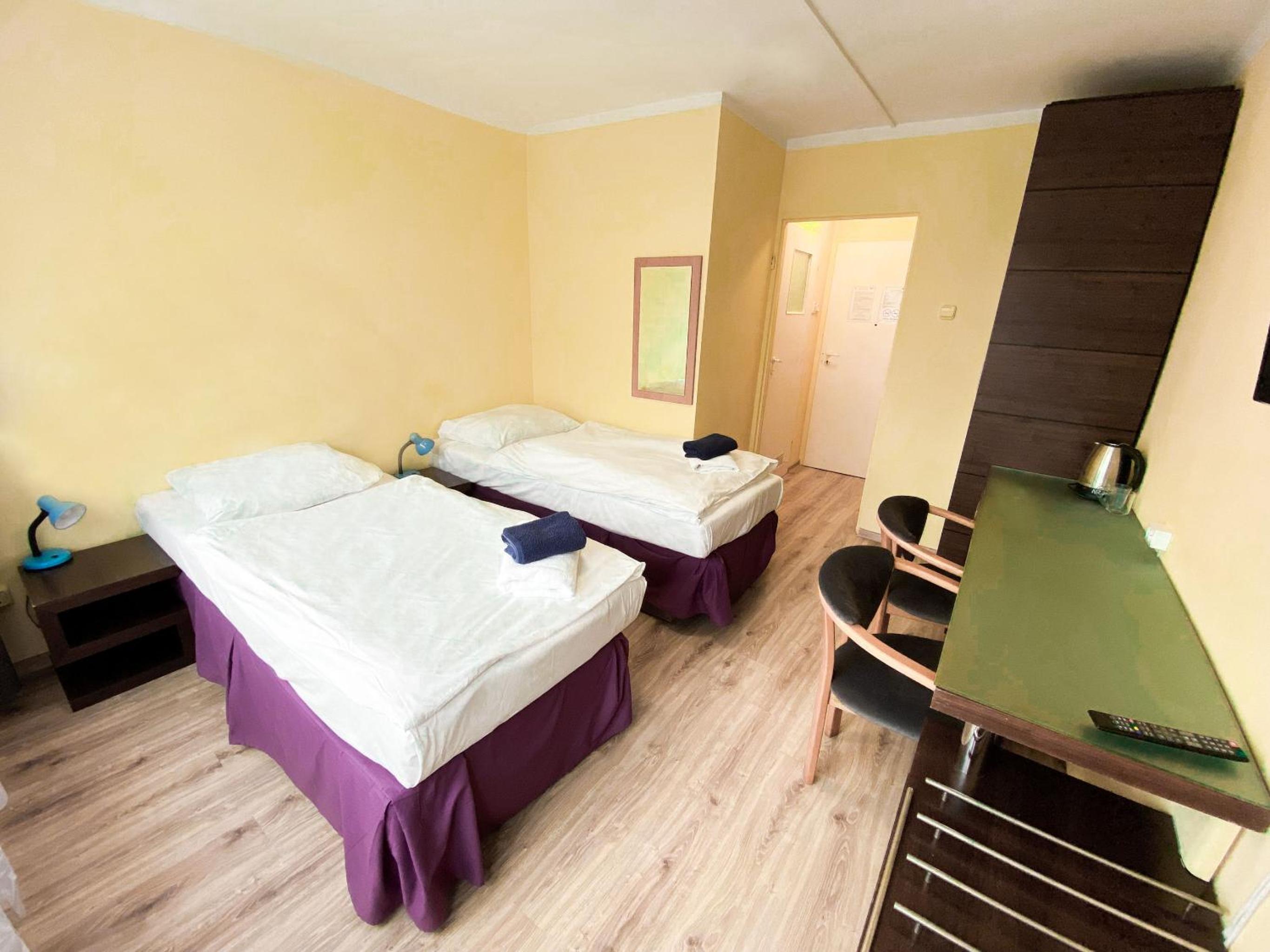 Relax in our well-equipped 1-star hotel rooms featuring flat-screen TVs, private bathrooms, and cozy bed linens. Our dedicated 24-hour front desk and room service ensure your stay is as comfortable as possible.