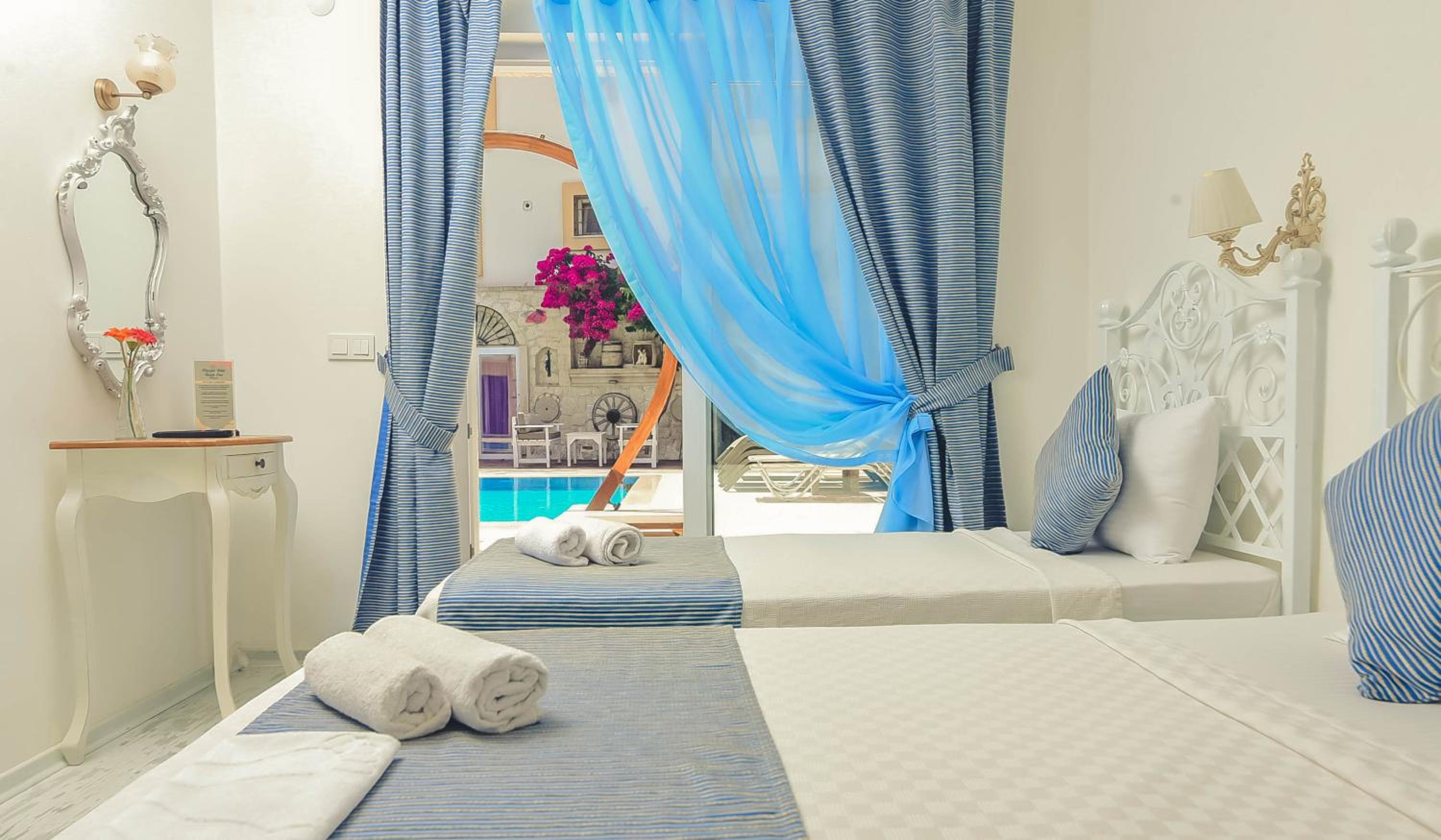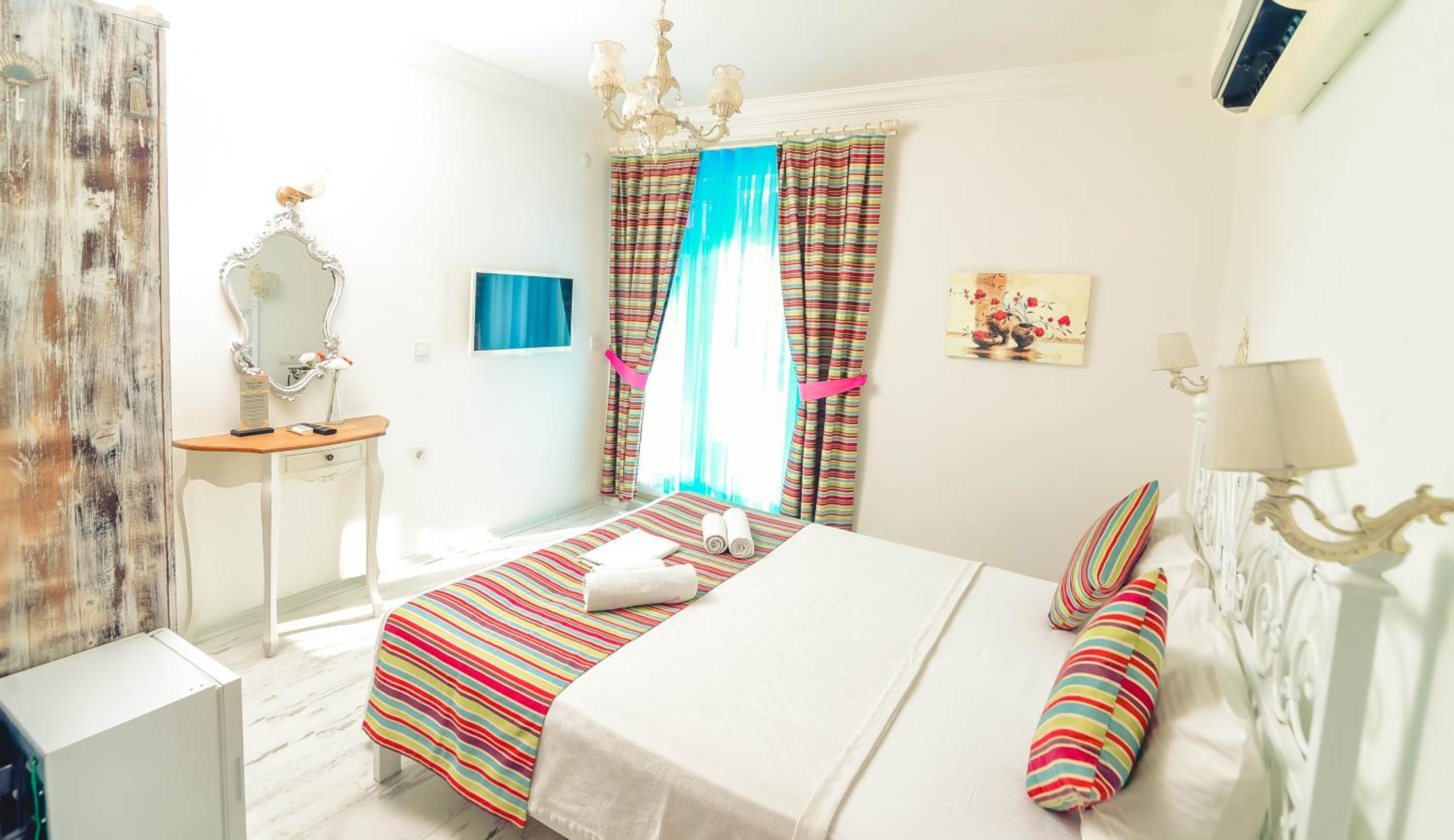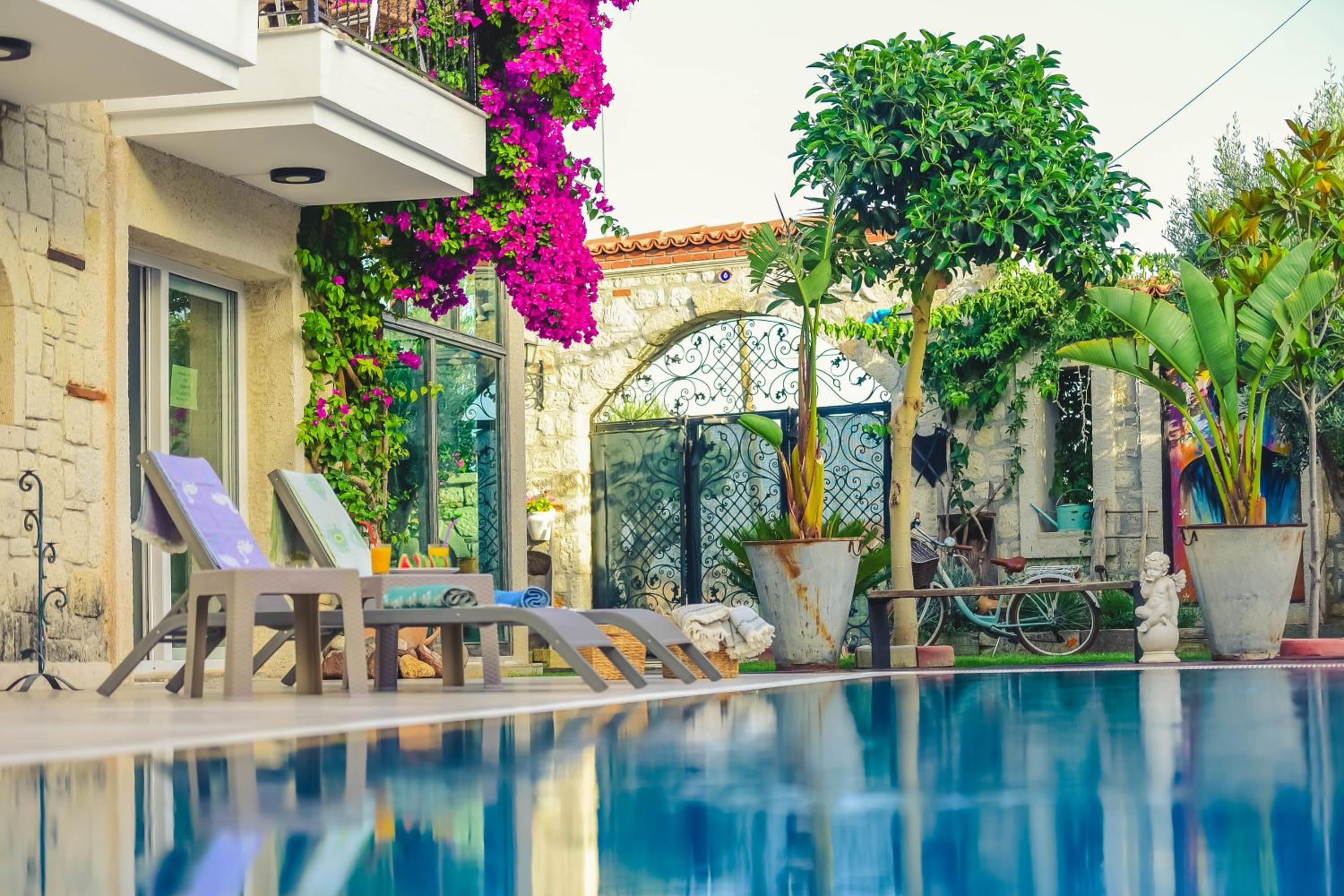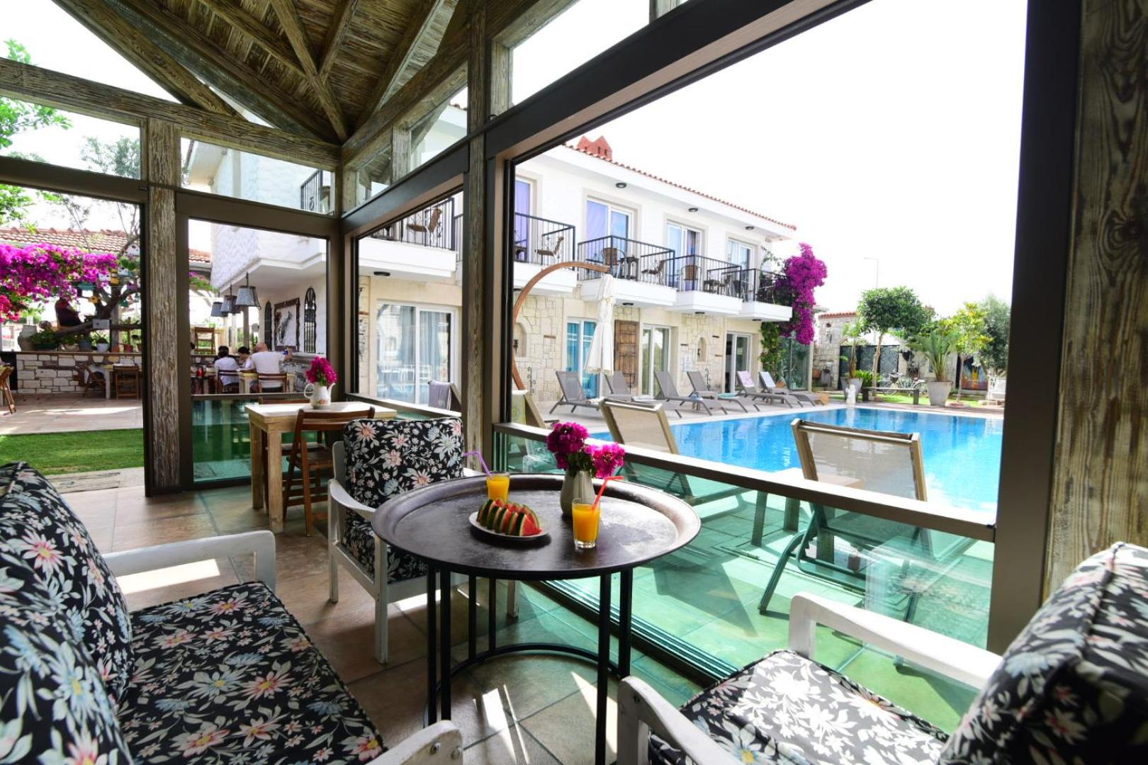 This was one of the best boutique hotels I have been to in my life. Very calm, bright and relaxing. Every detail in the hotel seems to be created with love and care here. The room was clean and quiet. Delicious Turkish breakfast was served every day and the owners tried to make it variable for the guests, which is also very much appreciated. In general, since it is a family owned business, the owners are very helpful and accommodating. Location is also very good, if you want to hang out in the old town of Alacati in the evening. However, note that it is a bit further away from the beach and most likely you will need a car or bicycle to go to the sea. There is a bike rental 15 minutes away from the hotel, where you can rent a bicycle or scooter for a reasonable price. Alternatively, you can use public transportation, but since I never used it, I can't say if it is comfortable or not.