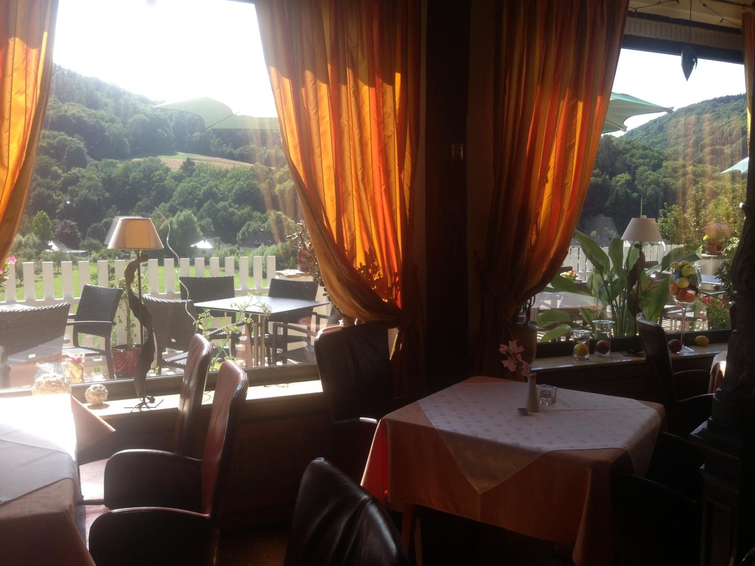 Na een zware fietstocht over de Lahnradweg kwamen we aan bij het hotel. Geweldige plek om hier tot rust te komen. Op het terras in de avondzon met een prachtig uitzicht genoten we van een heerlijk diner. Het was erg fijn dat het restaurant avondeten serveerde, zodat we niet op de fiets naar beneden moesten naar het stadje Nassau...en weer omhoog! Het personeel was erg vriendelijk. De kamer was fijn, de bedden prima.
