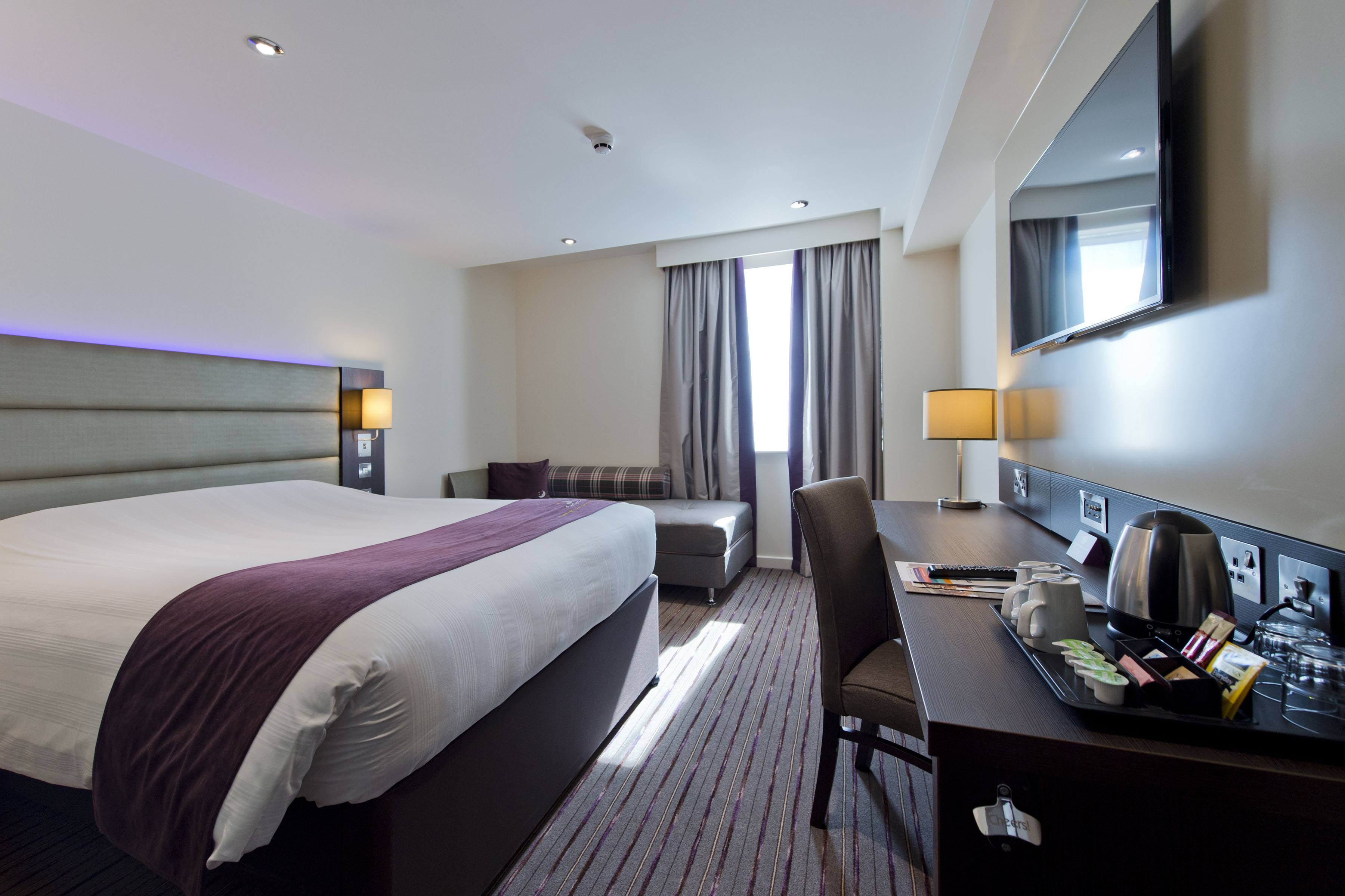 Usual Premier Inn comfy beds, reasonable price, brilliant location etc, but inexcusable experience on our first night; after a long stressful day ( Oct 13), we ordered a bottle of white wine with our dinner, and it was served at room temperature and not even in an ice bucket!