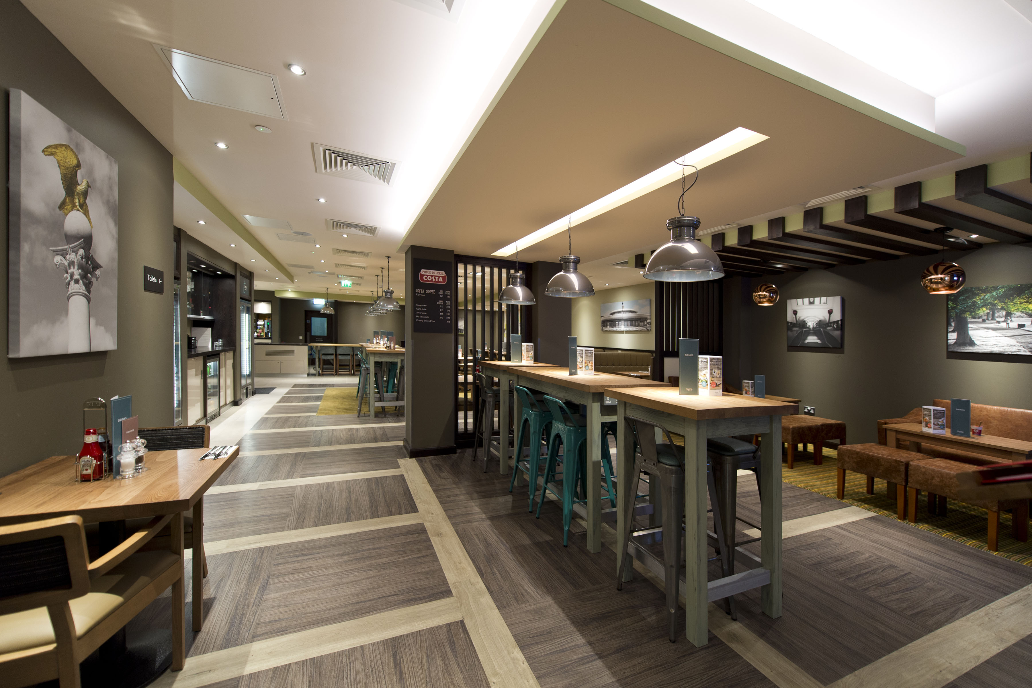 Hugely disappointed with the first room offered. There was smell of musty dampness. We asked for a change of room, which we were given. The second room, although better, still had a slight musty smell. We were only staying for one night, so put up with it. Because of the initial feeling of unkempt, we decided not to use the restaurant facilities. We have had good experiences with other Premier Inns, sadly this one has put us off.