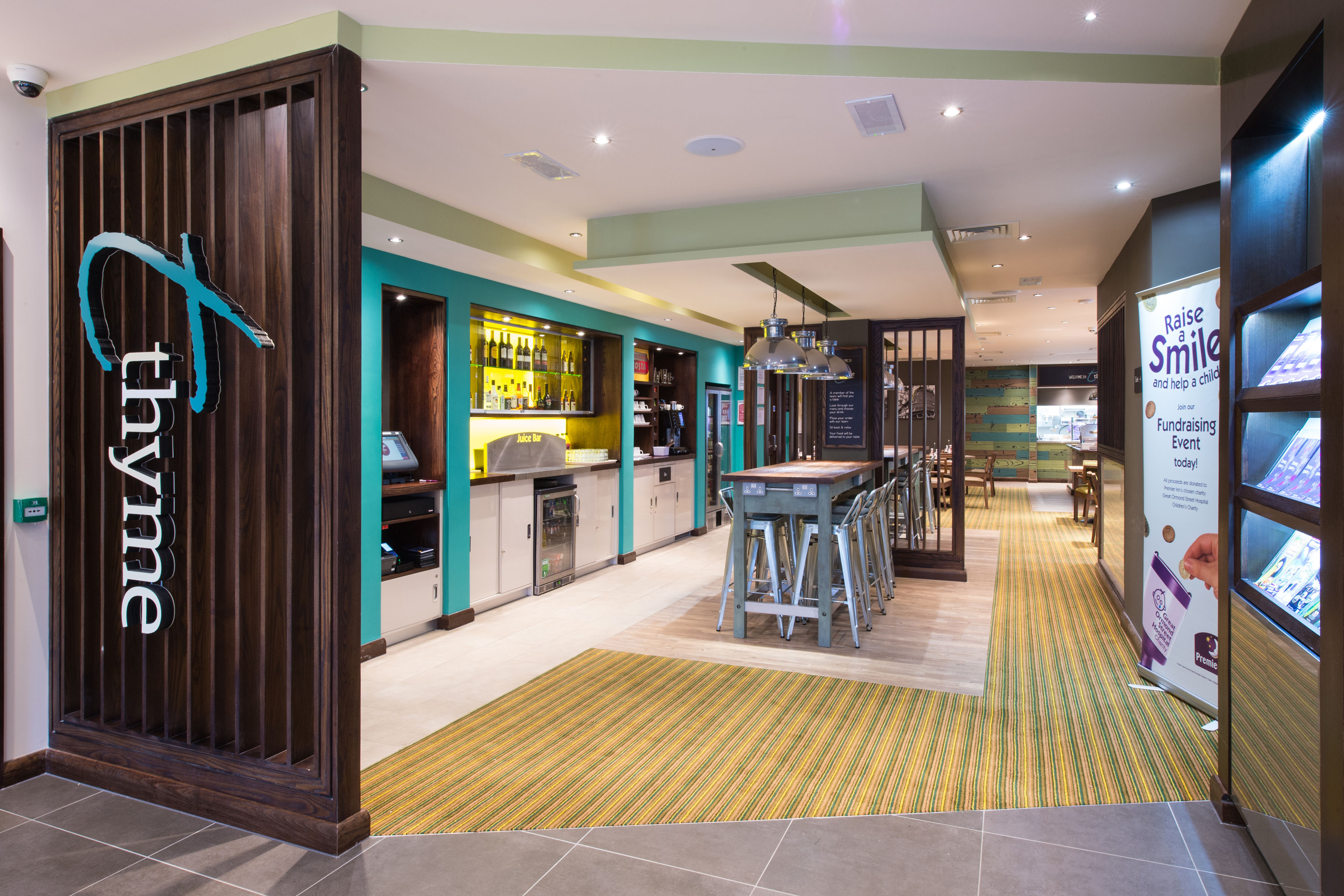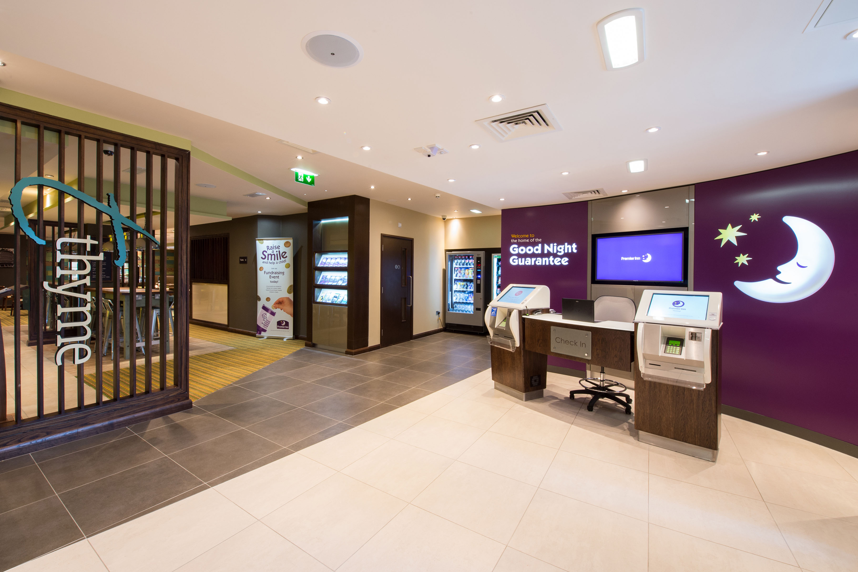 The receptionist was courteous, friendly and helpful - but failed to tell us that the restaurant closed at 8.30pm, which meant that we had to be refunded for our meal deal - and try to find a restaurant nearby, which proved difficult. The bar closed at 9.30p and there was only one person on duty at the time. Definitely not up to most Premier Inn standards.
