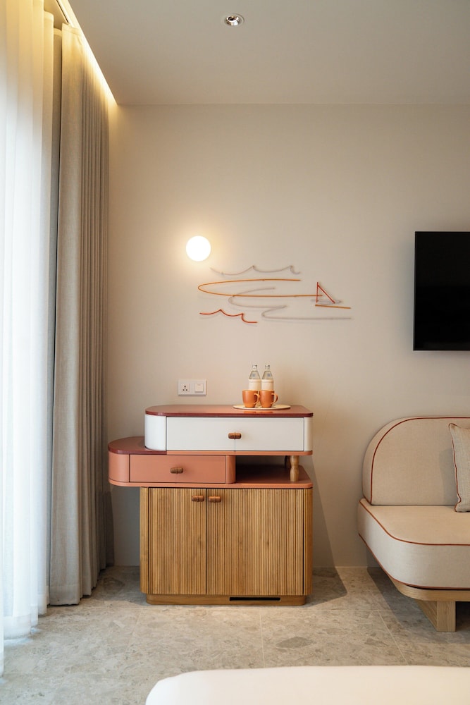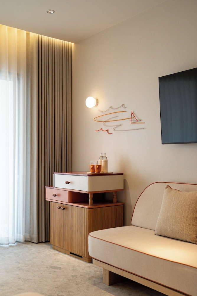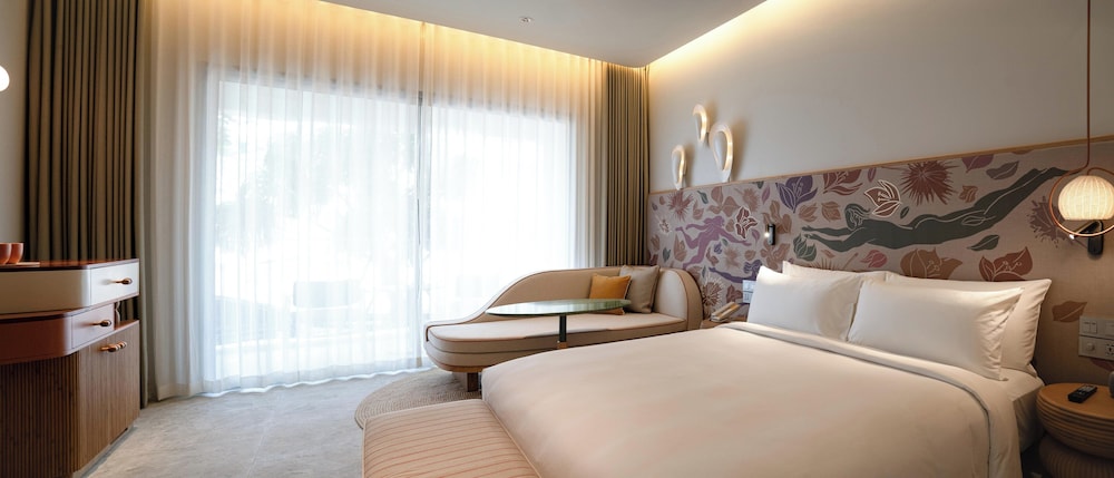 The hotel is brand new and beautifully styled. From the open air lobby to the gardens, rooms, restaurants and public spaces it is all stunning. The rooms are beautiful and well appointed. Beds and pillows superbly comfortable. The onsite restaurant Seira serves the best Massaman curry I have ever had. Access to the beach and neighbouring restaurants is easy. Jomtien is chilled and relaxed and feels very exclusive.