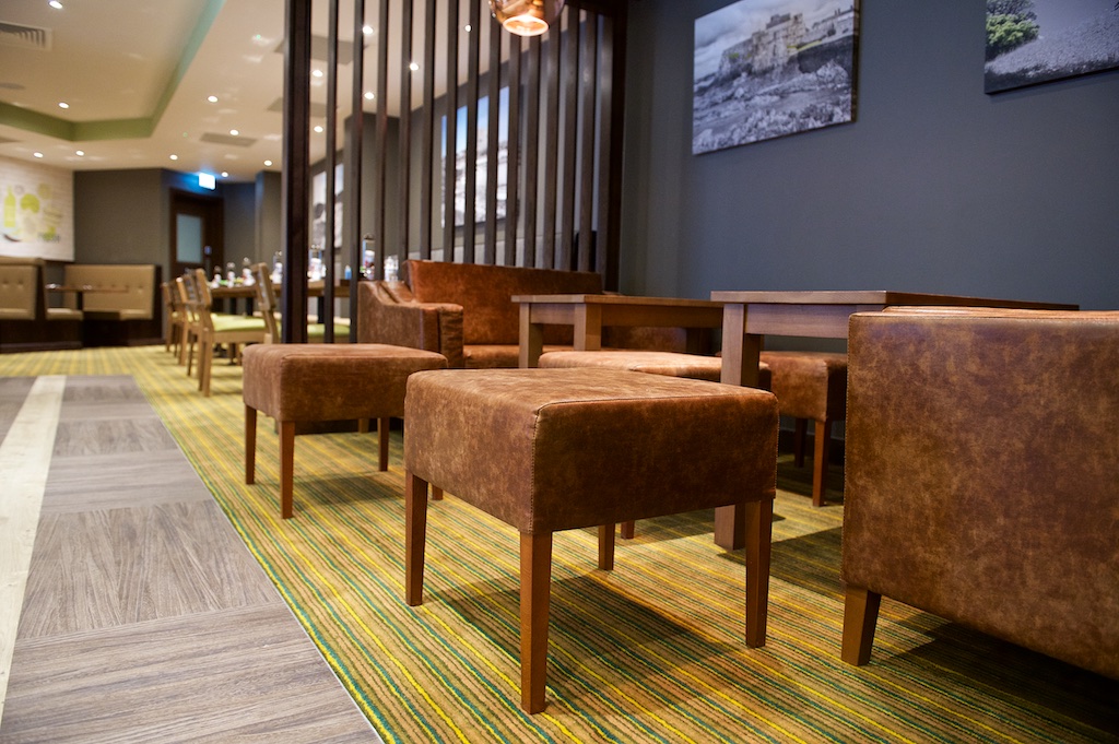 Great location. Plenty of restaueants around. 5 minute walk to the bus station. Room good what is expected from a premier inn. Clean. Only negative room could have had a 2 seeter sofa in to sit on. Plenty of room for one. Great shops around you. Very quiet at night. Had good night sleeps. Stayed for 7 nights and would highly recommend staying here