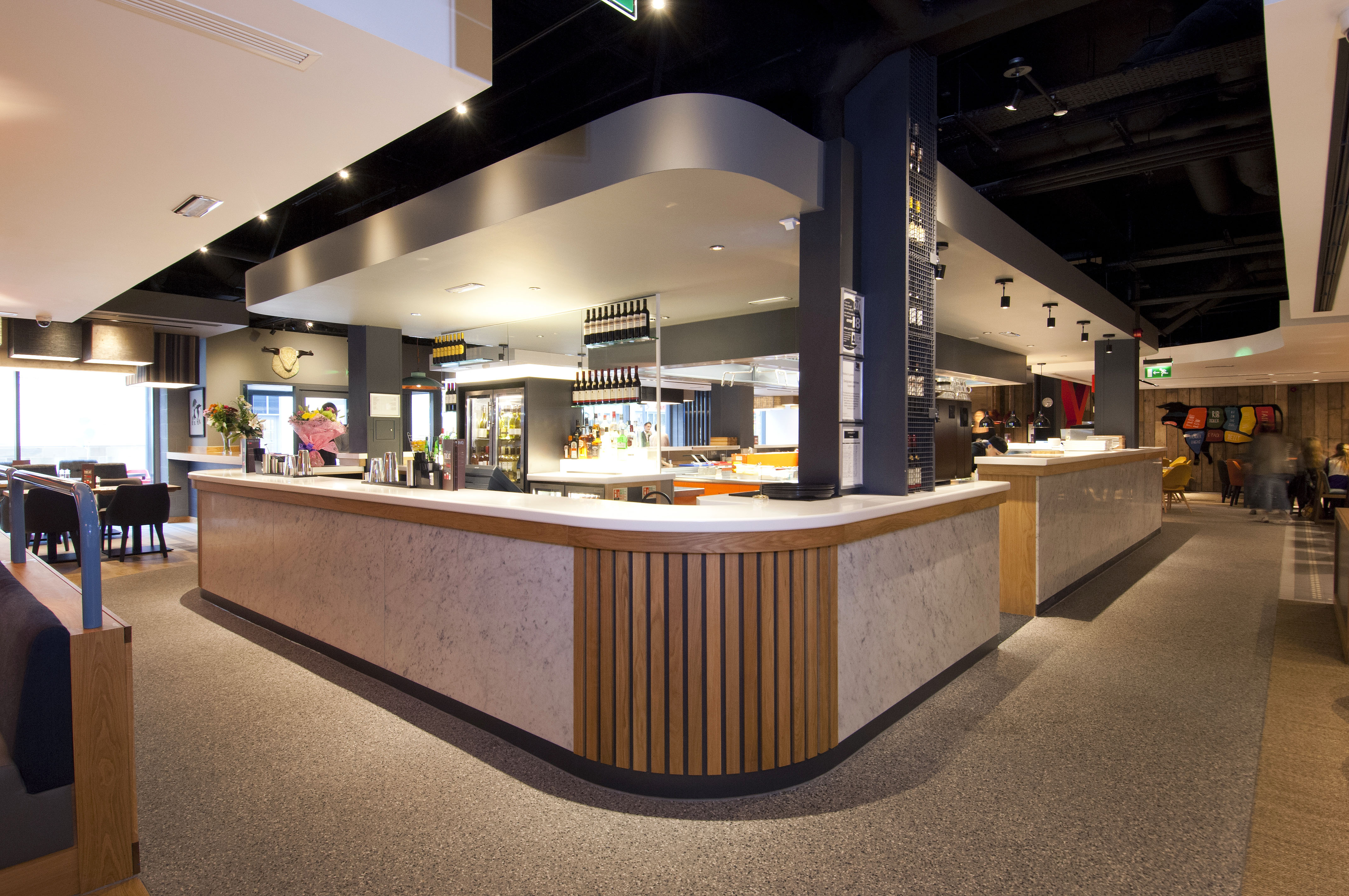 2. Beefeater restaurant. Tried to eat here on the evening but were told 2 big groups had arrived and food would be 30-45 mins. We were on a tight schedule so went elsewhere. Breakfast wasn’t the greatest experience. We were asked to book at table ahead which we did but it was so busy. Hot breakfast is cooked to order and we were waiting about 30 minutes for it. The coffee machine was broken and the queue for the continental section was long. If the items could be rearranged it would help as the queue was due to people waiting for toast. Food was ok.