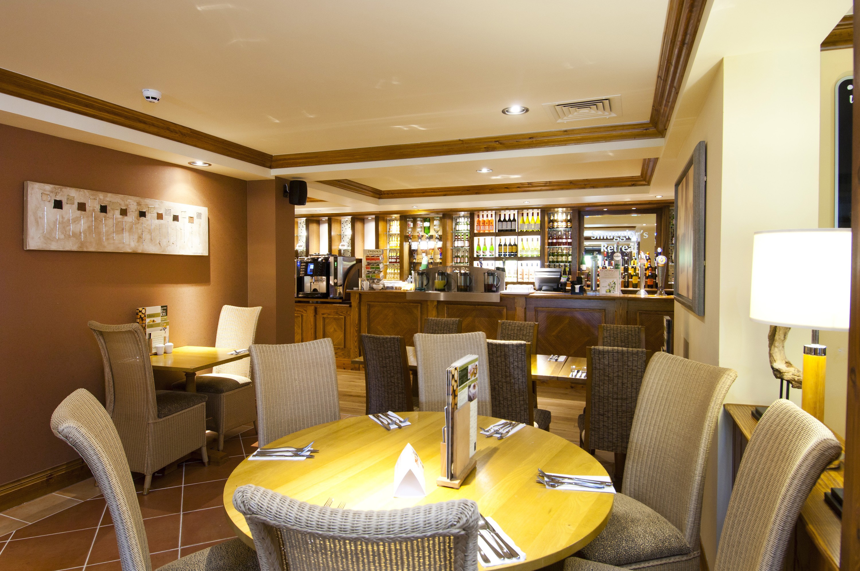 Table/table restaurant bar on site. Staff here need some lessons in manners and customer service, Breakfast on Friday was pleasant and food hot, cooked to order. Saturday was a cold, tired looking buffet, some items had not been replenished and when a large group arrived more food was needed. Host on Sat 20th Sept, was rude and curt with all guests, unlike the lovely ladies serving on Friday 19th Sept. Bar staff were very rude and almost verging on argumentative - bar closes at 10pm.