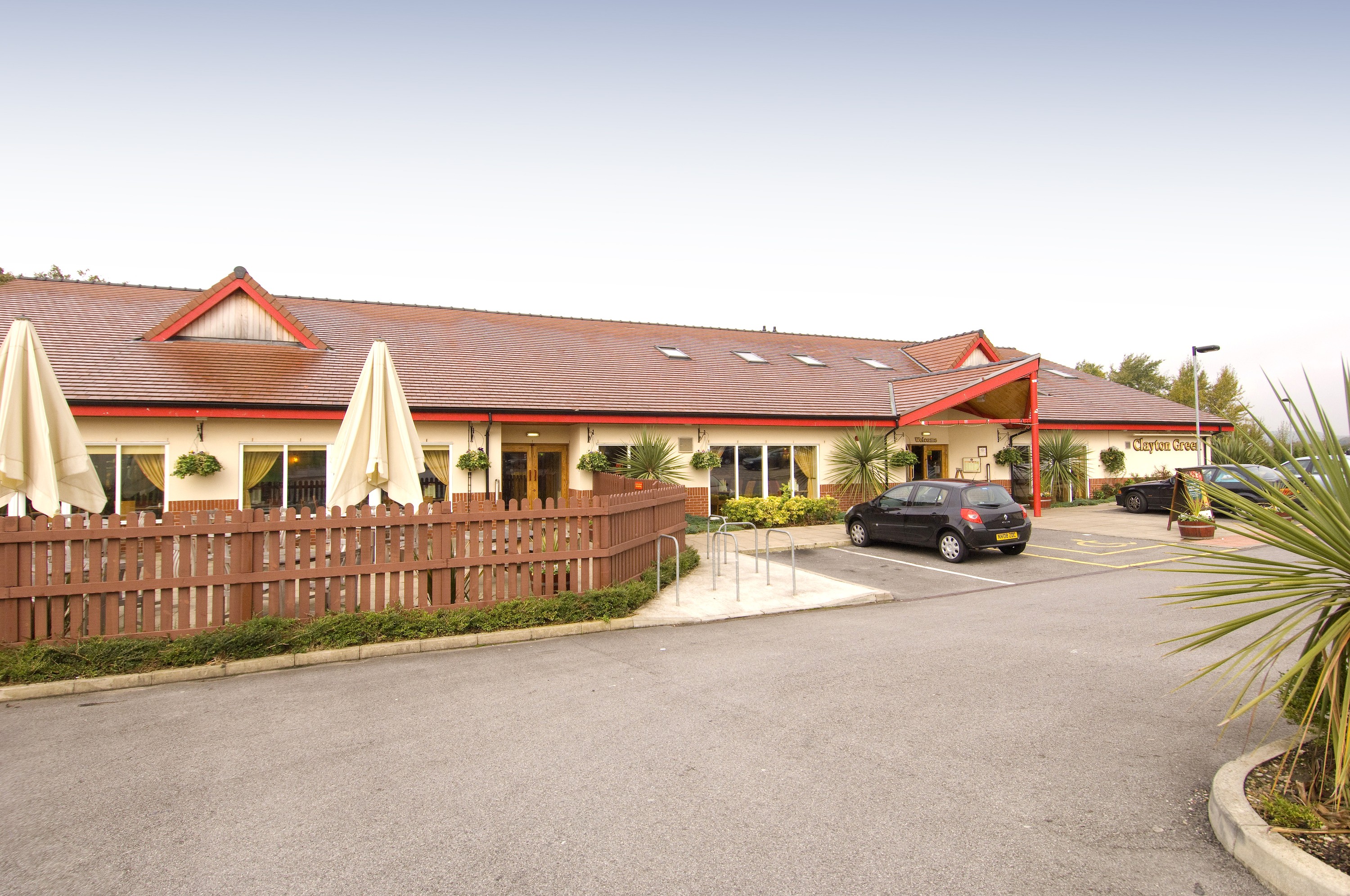At M62(J20), take A627M towards Oldham. Take 2nd exit at roundabout onto A627 Chadderton Way. Hotel is left at 1st traffic lights (500 yards), opposite B&Q and next to the Clayton Green Brewers Fayre. For SatNav use OL1 2QL