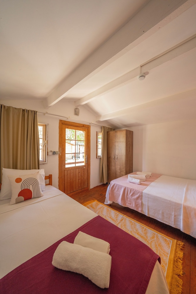 Rastgele aldığım acele ile yaptığım bir rezervasyondu. Giderken sarılıp neredeyse ağlaşıp öyle ayrıldık. Hemen anlatayım. Fethiyeye bağlı Faralya Mahallesi'nde kelebek Vadisi'nin dibinde Ölüdeniz'e bakan eşsiz bir günbatımı manzarasinin eşlik ettiği harika konumda bir hotel. Odaları ayrı ayrı kulübe şeklinde. Duş banyo içinde. Standart olarak gerekli herşey mevcut. Büyükanneden oğula, kızına, torunlarına ve gelinine çok ama çok tatlı bir ailenin işlettiği çok tatlı bir mekan. Kendi arabanız ile eşsiz bir manzara eşliğinde gidebilirsiniz. Şehir merkezine çok uzak değil. En fazla normal zamanda 15 dakika. Biz bayramda gittik. Odalar temiz, yataklar rahat klimalı odalar. Televizyon yok zaten gerekte yok. Kidrak plajı ve kabak plajının tam ortasinda . İşleten aile harika ve çok cana yakın. Muhteşem bir gunbatimi eşliğinde ailenin kendi yaptigi yemekleri yiyorsunuz. Yemekler bildiğiniz anne yemeği. Ufak sayılmayan çok büyük olmayan temiz bir ortak havuzuda var. Sabah sınırsız kahvaltı mevcut. Mutlaka gidin pişman olmazsınız. Akşam yemekleri ücretli ancak başka yerler gibi uçuk fiyatlar yokm dışarıda ne oduyorsanız onu ödersiniz. Harika günbatımıda hediyesi. Gecenin yarısı kahve istedim onu bile yaptılar. Neşeli aile tarzı bir ortam var. Harikaydi herkese çok teşekkürler.