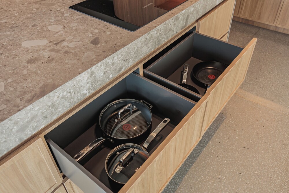 Relax in one of our 18 spacious guestrooms, each featuring a well-equipped kitchen with a refrigerator and oven. Enjoy restful nights on plush down comforters and premium bedding while soaking up stunning views from your private furnished balcony or patio.