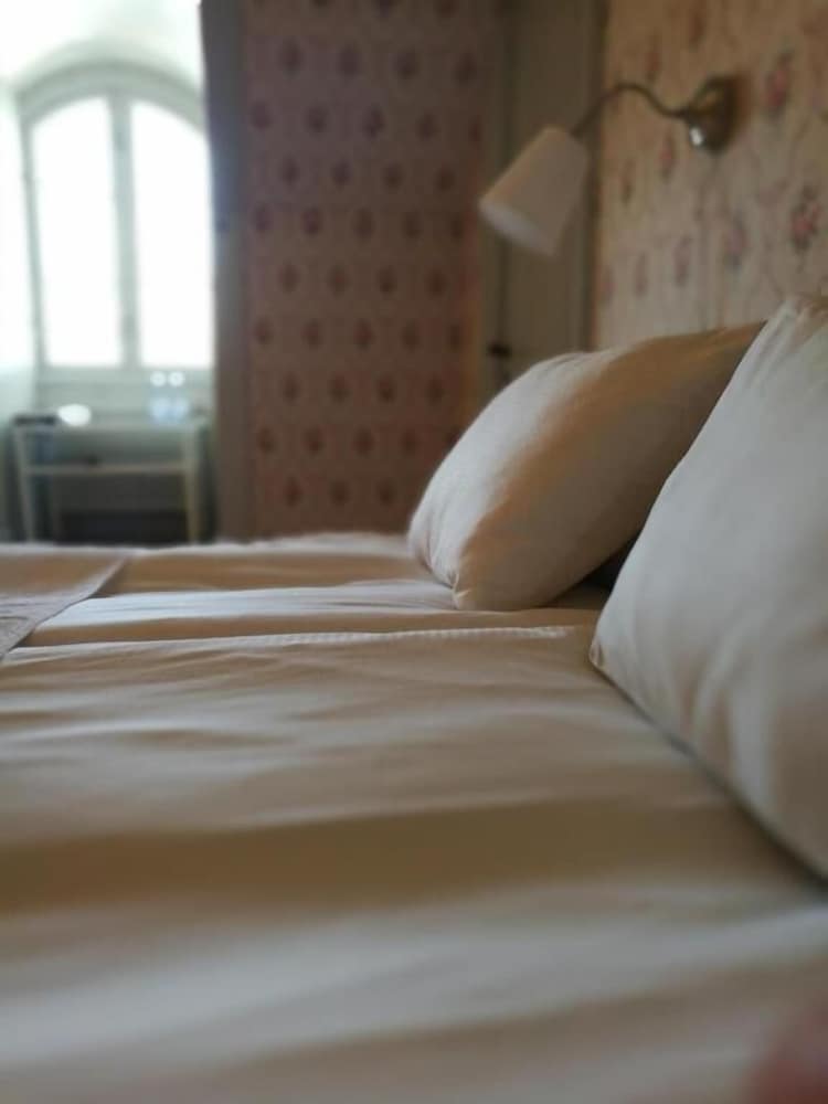 Fantastiskt vackert ställe med dessa omgivningar och historia. Rummet var väldigt litet med en 140 säng och ett fönster där solen gassade för fullt så var som att sova i en bastu. Ingen tv eller ventilation men väldigt pittoreskt och mysigt.