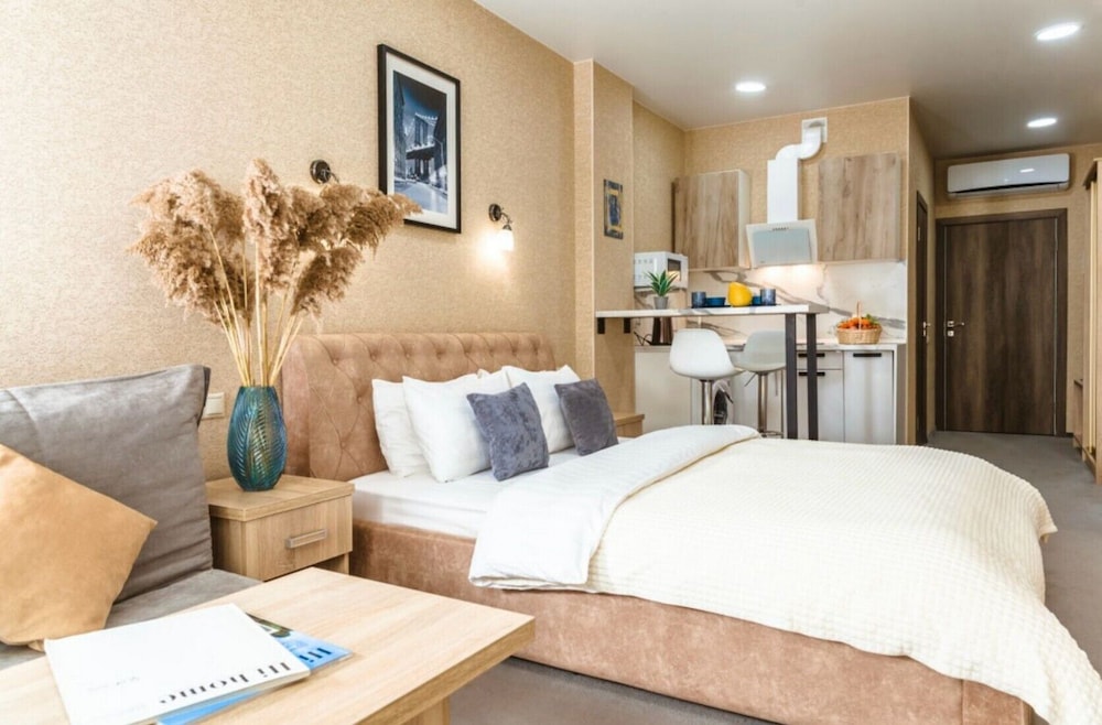 Well-Equipped Rooms: Stretch out in one of our 59 spacious guestrooms, each featuring a fully equipped kitchen and a private balcony — ideal for enjoying your morning coffee or evening breeze.