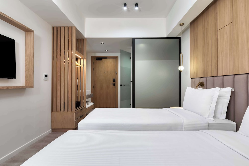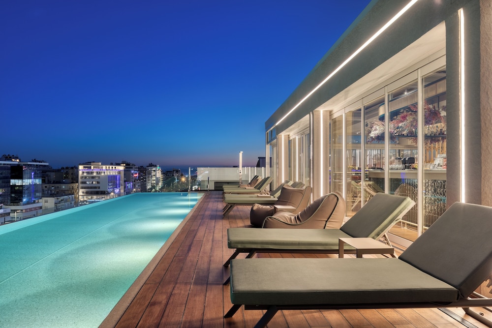 Although the hotel is located on a busy road, it is a clean, friendly, well-equipped, and fun stay. Convenient via taxi to main destinations in Athens. The rooftop pool and bar was a treat. The staff were amazing - especially Ilias and Orfeas!