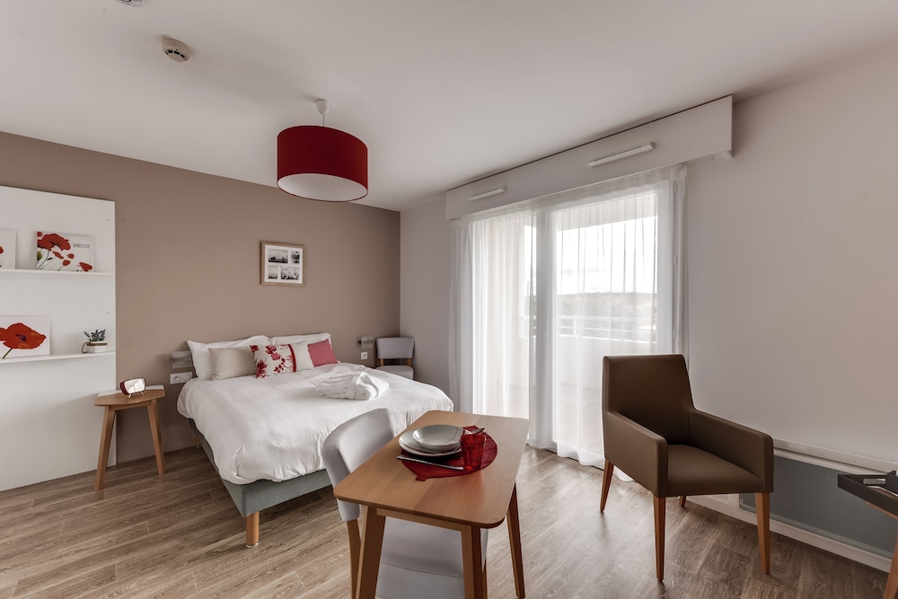 Le plus difficile reste a trouver l'endroit car rien sur la façade n'indique un appart'hôtel par contre il y est noté "Residence séniors". La cohabitation est très bien mais nous aurions aimé le savoir à la réservation, ce qui déjà nous aurais evité de passer 3 fois devant sans nous arrêté (aucune indication) et nous aurais laisser le choix d'accepter ou non en connaissance de cause plutôt qu'etre confronté a des personnes âgées et du personnel soignant brutalement.