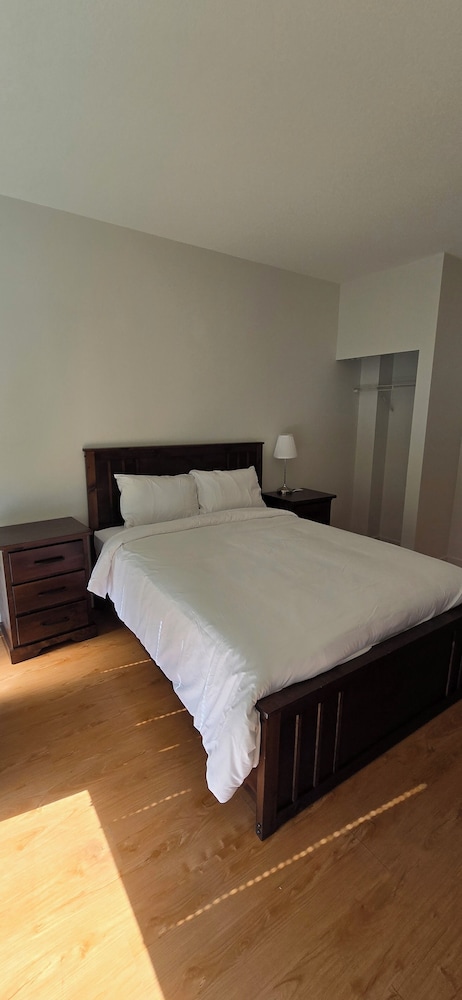 Me and my boyfriend stayed here after driving all the way from Calgary AB. This was a great stay with convenient parking at the back which was free. If we stayed here longer than 3 days it would be perfect as it had dishes and a microwave in the suit. The security on the doors made it feel extra safe as well. Highly recommend!