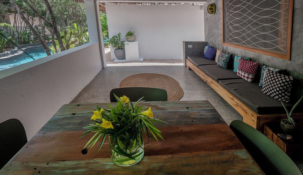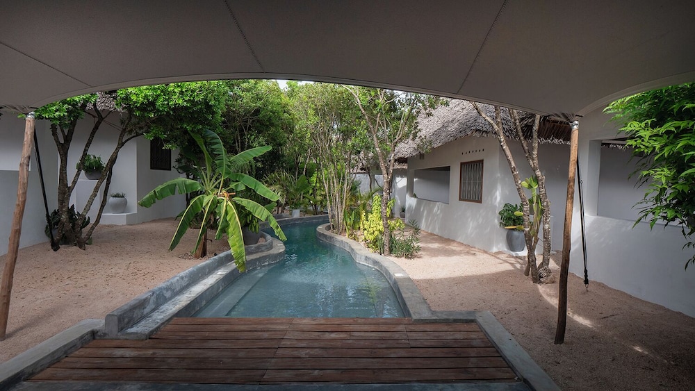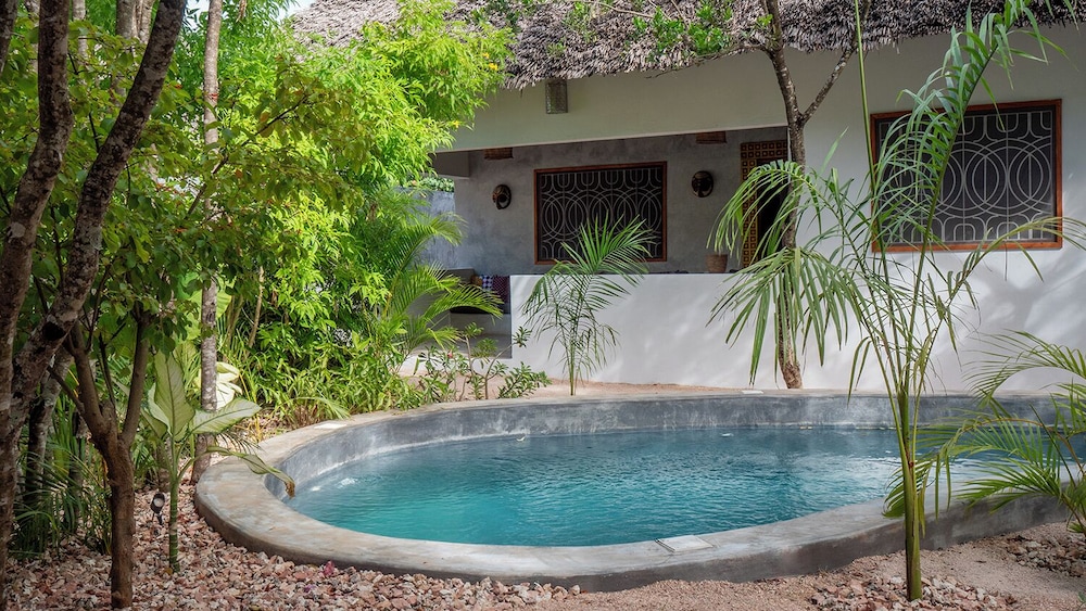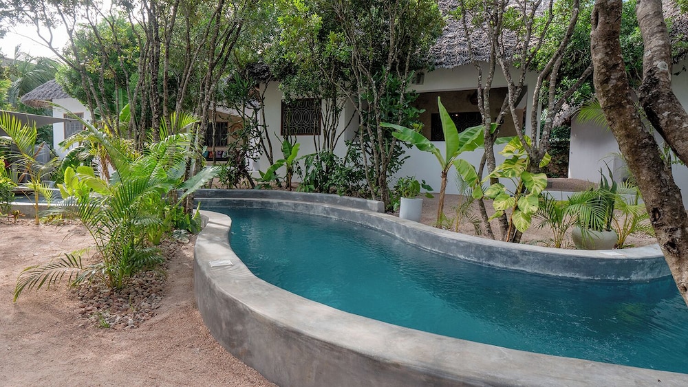 Take a dip in our refreshing outdoor pool or enjoy the vibrant surroundings with easy access to thrilling local attractions such as Jambiani Beach just 0.2 km away.