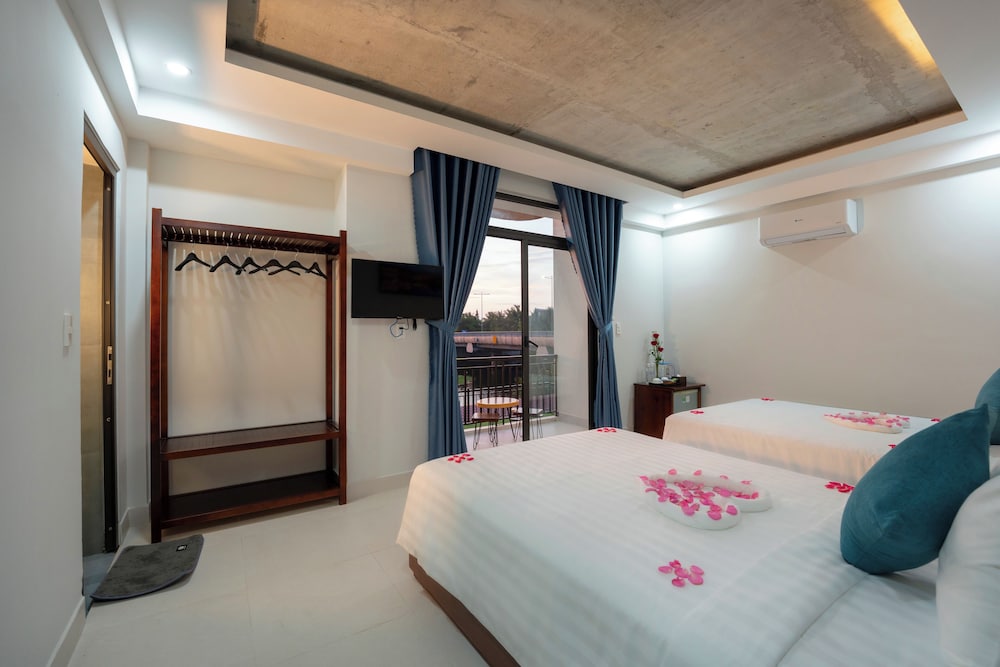 Relax in one of our 16 elegantly designed air-conditioned rooms, featuring private furnished balconies and complimentary Wi-Fi, ensuring you feel right at home throughout your stay.