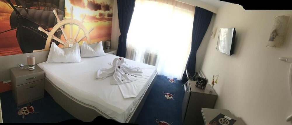 Om du önskar dig ett sunkigt och nergånget hotell sminkat med pirattema från Temu så har du kommit rätt. Frukosten var katastrof, servicen icke befintlig och poolen överfull. Solstolarna kan du glömma för de reserveras tidigt på morgonen som om det vore 1980.
