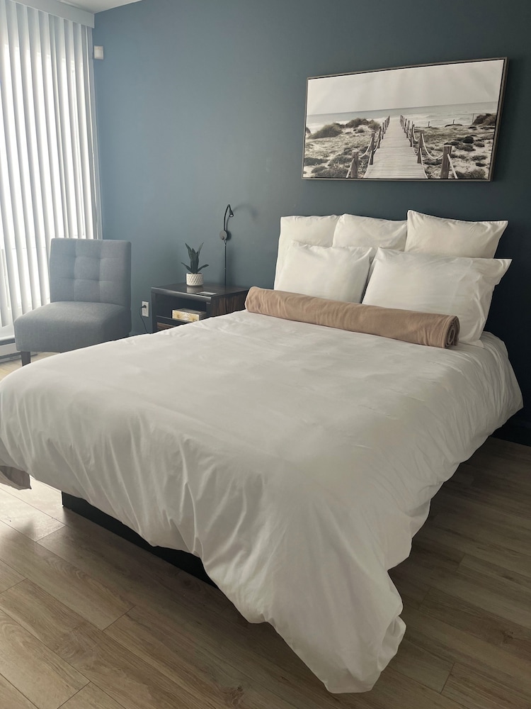 This property needs some dprucing. One night stand, no head board, super this pillows, old mattress, no desk, no iron, no ironing board. Towels left link in body. Stayed 2 nights and I won’t go back. Lovely city but will find other Accommodations.