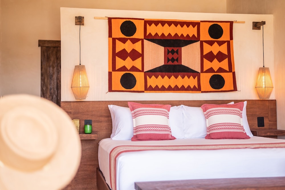 Lindo lugar, con un servicio excepcional. Buena comida, pero carta limitada. Habitaciones pequeñas pero cómodas. Hermosas vistas, y con solo 8 habitaciones, tienes sensación de exclusividad. Nunca faltó donde tomar el sol o sentarse a comer. Muy tranquilo espacio, en una playa en la que no se puede nadar (mar abierto). Y no lo quise creer, pero efectivamente el ruido de las olas por la noche puede realmente afectar el sueño!