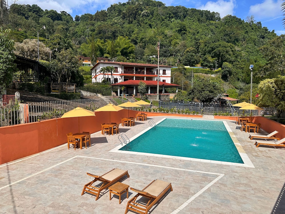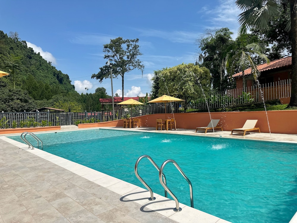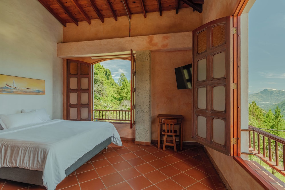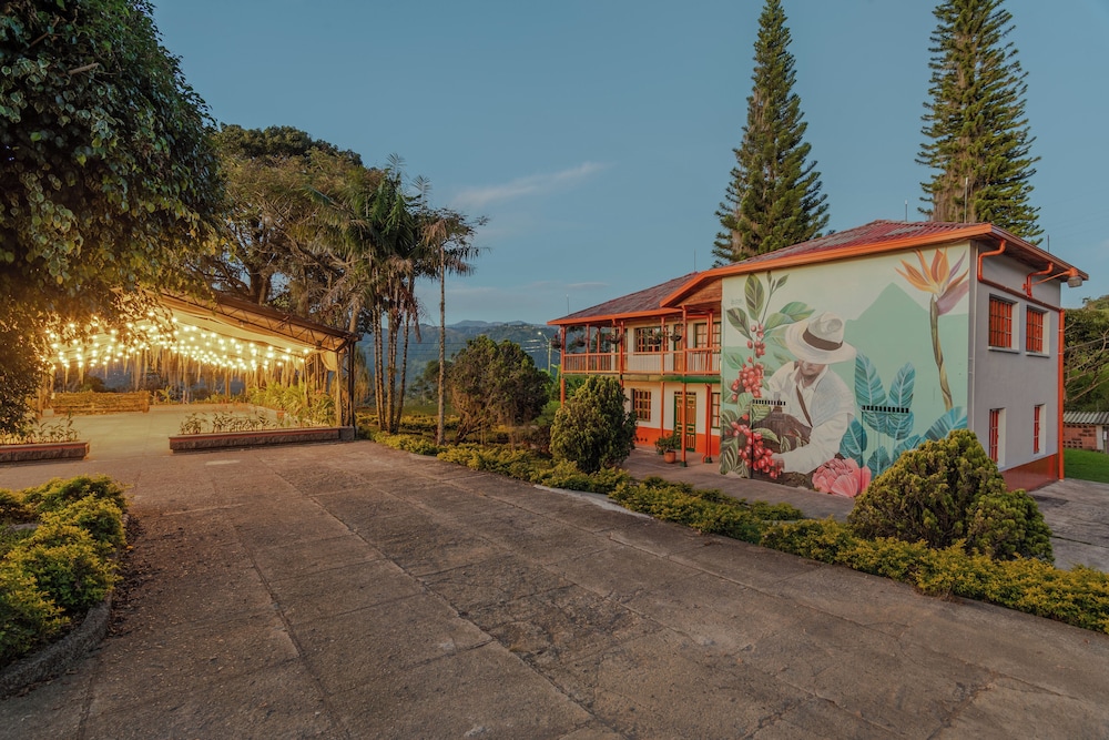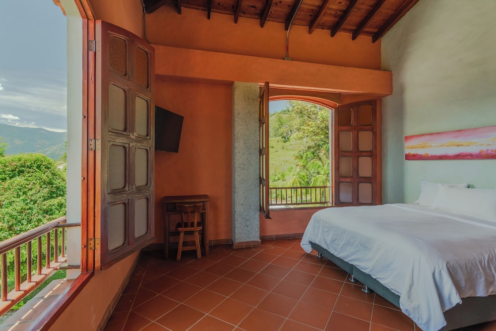 Escape to the serene beauty of Granja del Cafe Esteban Jaramillo, nestled in the breathtaking mountains of Venecia.