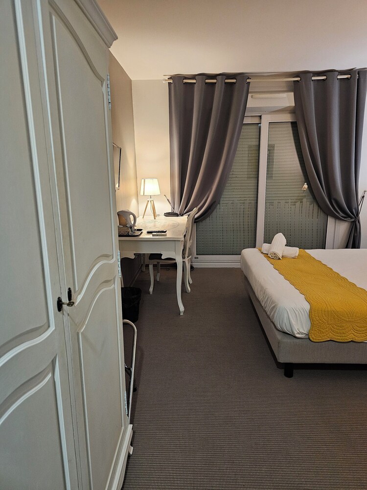 Nous ne recommandons absolument pas cet hôtel, nous y sommes allés en couple pour un week-end : la réceptionniste était totalement débordée. Les propriétaires n’emploient pas assez d’employés pour gérer un hôtel de cet envergure. Douche sans rideau ce qui mouille toute la salle de bain, trace de chaussures dans notre chambre, piscine pas propre, verres sales (en plastique), serviettes qui sentent mauvais, pas de volet. Les chambres manquent d’équipement. Dans tous les cas les chambres ne méritent certainement pas qu’on y mette ce prix là.