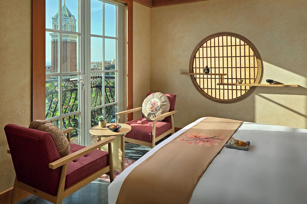 The hotel is located in Sun Set Town, an Italien inspired small town with historical sights. the Highlight of the town was besides the beautiful architecture the daily firework. For the fireworks you can also Access the roof top terrace for a better view. Overall we enjoyed our stay a lot especially the restaurant is a highlight. We will surely return one day to this beautiful hotel and location.