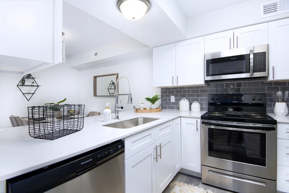 The location and apartment were just what we needed for a week long work training. With not a lot of hotels in walking distance, we gave this a go. There were no reviews yet, so that was a concern. But it was good for what we needed it to be. The complex is mostly permanent residents and as such, some of the public areas could use work. But, the apartment itself was comfortable and you could tell there were upgrades that had been made by non-professionals. But it had everything we needed including a washer and dryer, all the kitchen needs and an outdoor pool.