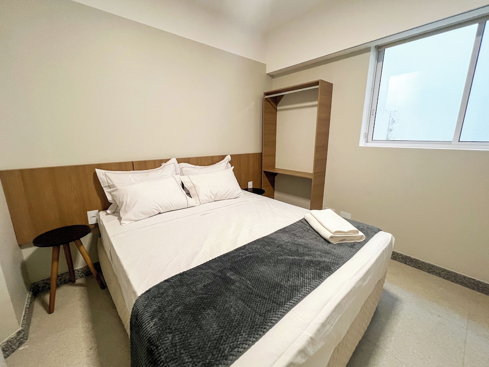 A única coisa ruim é que o apto que fiquei não tem janela, e assim fica parecendo uma prisão, o vaso sanitario é dentro do box do chuveiro, após tomar banho fica impassível de utilizar sem molhar os pés.