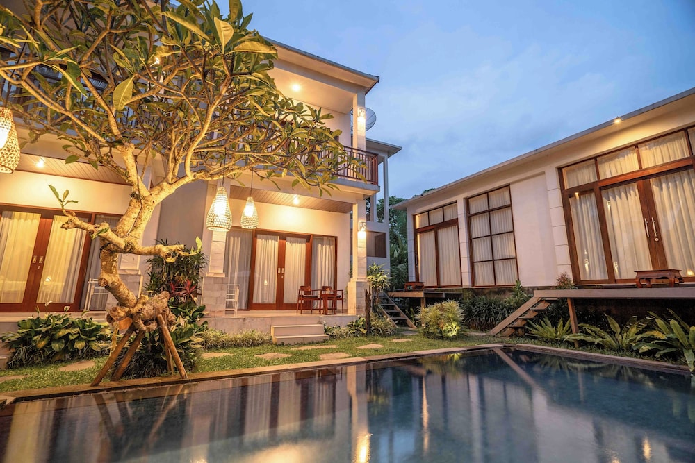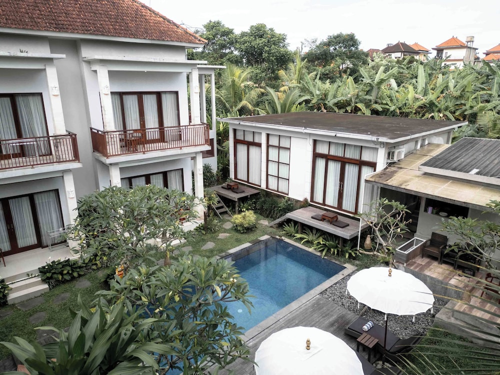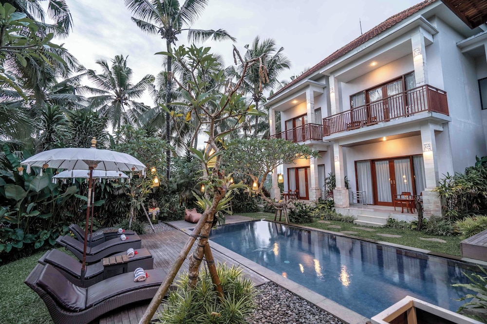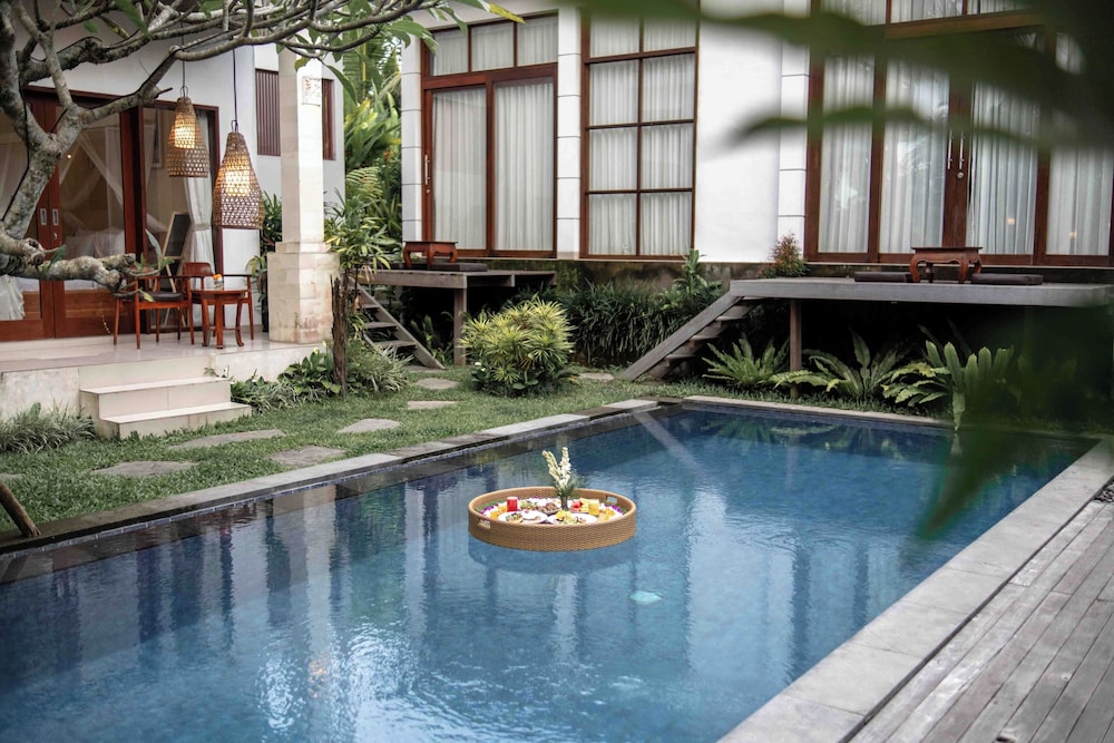 Dive into relaxation with our inviting outdoor pool and unwind amidst lush gardens and a beautiful terrace, perfect for soaking up the Balinese sun.
