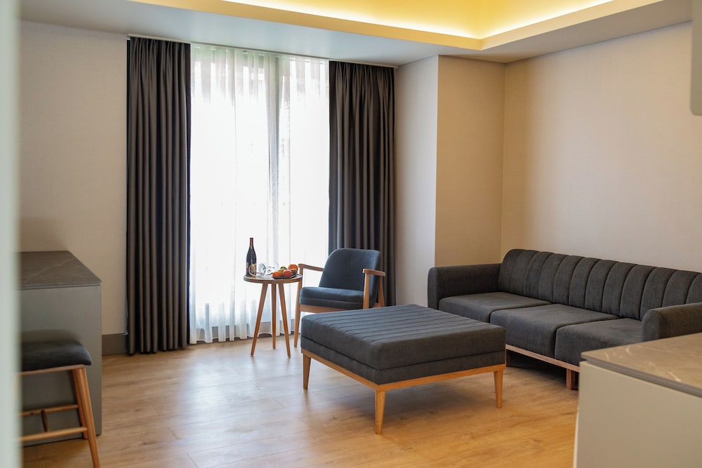 Hotel bem novo, a uma curta distância de taxi dos principais pontos turisticos de Istambul. Eles tb possuem um serviço conveniente de transfer para a PraçaTaksim. Apesar de não ser precisamente na zona turistica e é um pouco difícil de se locomover a pé, recomendamos para pessoas que usam mais taxis, pois a estrutura do apartamento é realmente ótima. A uma caminhada fe uns 10 min há um mercado e shopping para eventualidades.