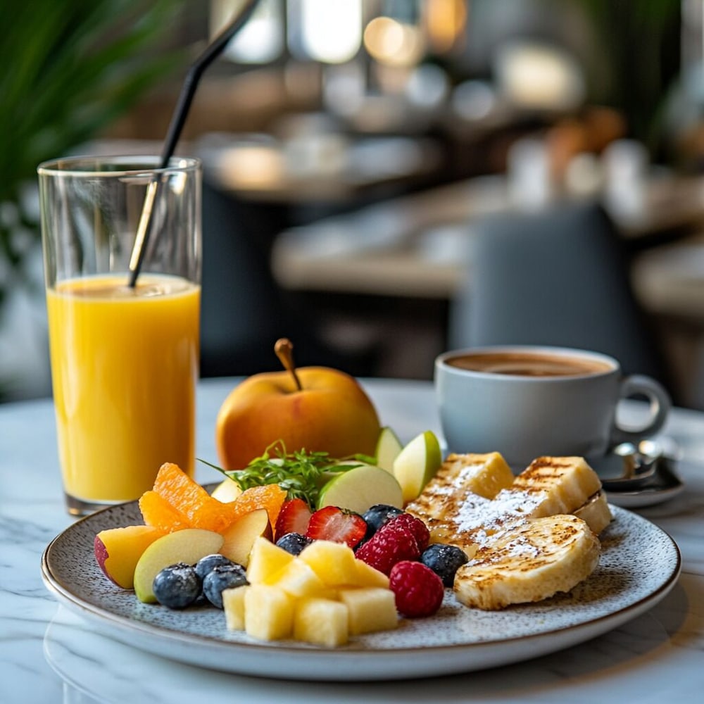 Satisfy your palate at our on-site restaurant, and treat yourself to a refreshing drink at one of our two stylish bars. Don't miss our complimentary cooked-to-order breakfast served daily, ensuring you start your day right.