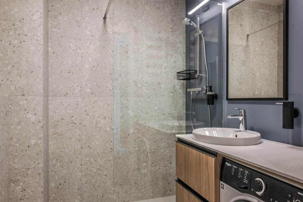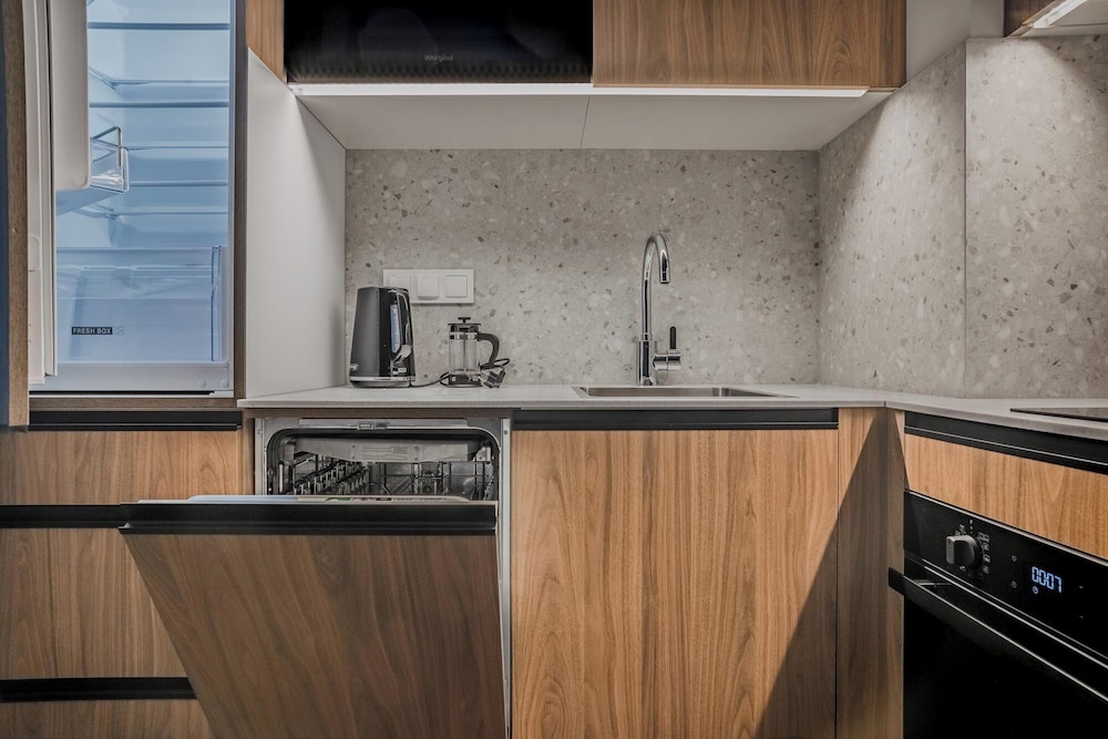 The apartment was very spacious and in great shape. It looked like it had just been commissioned or renovated. The hotel is nice & safe, easy check in (either self or via the reception). There are 2 shopping malls nearby with many shops, bars & restaurants options.