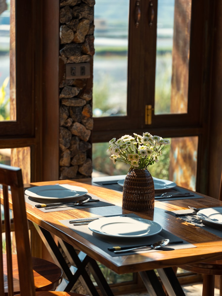 Beautiful homestay with the most lovely staff. The rooms are new and modern, the walls are thick and quiet, the ac works great, the bathrooms are spa like, and the views are really nice. Rice paddies all the hills are all around. The location is just a ten minute walk into town which means its still near everything but is quiet. The wifi wqs fast and reliable for remote work. There were 4 other ppl besides us all working remotely. The breakfast is very nice with an omlet station, fresh juices and fruit, bacon! And more. Western and eastern food available. The staff bent over backwards for us and were the sweetest ppl youll ever meet. They also arranged laundry, and transportation very easiky and at good prices. There are also bikes available which were in good shape. We never needed them because everything was so close. Highly recommend.