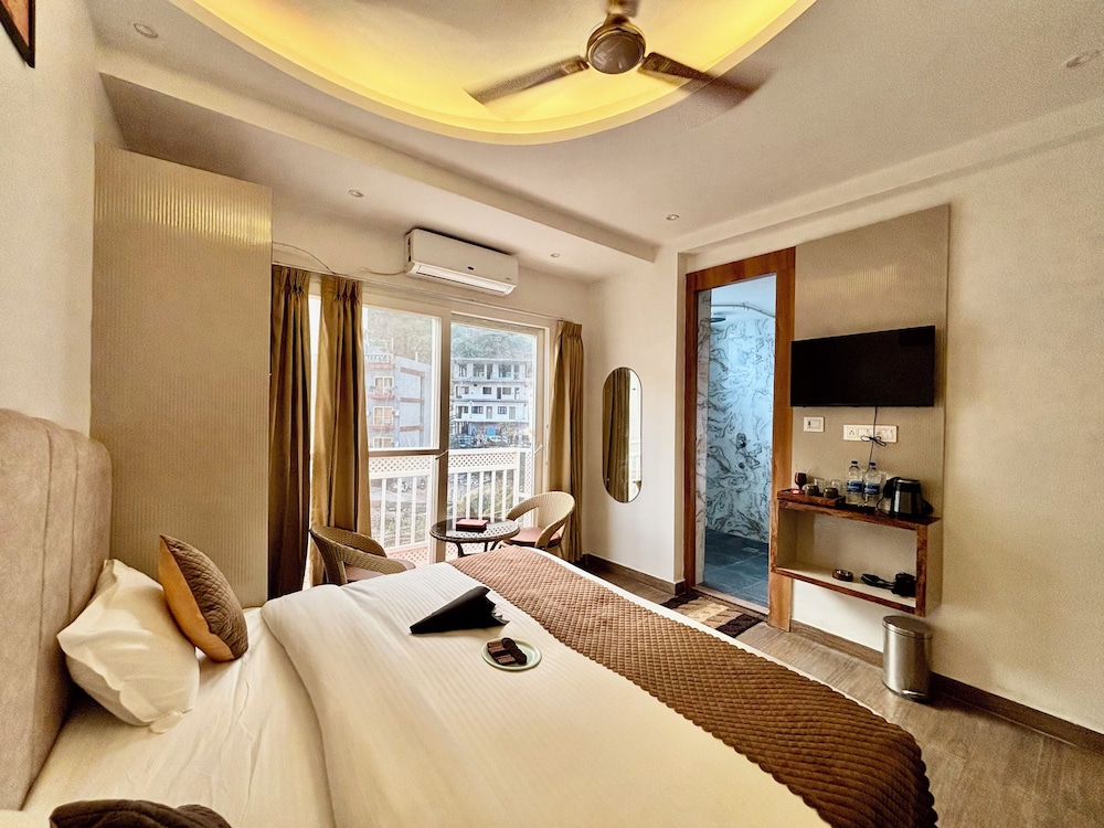 Experience a tranquil haven at our hotel, ideally located near the breathtaking Lakshman Jhula Bridge.