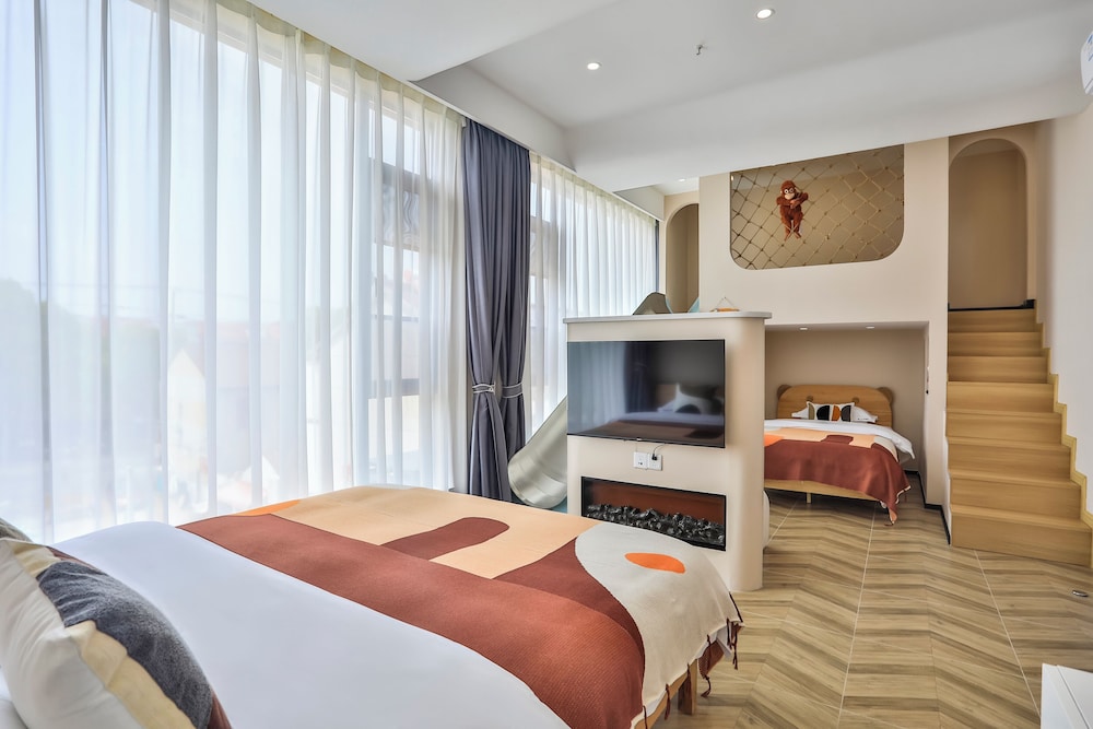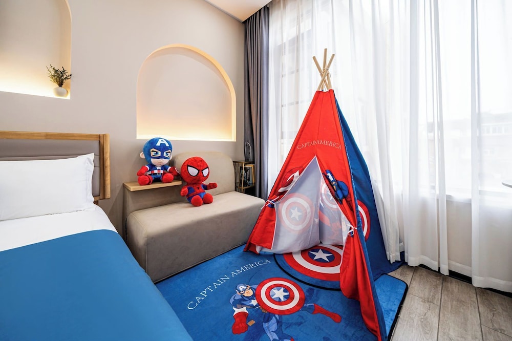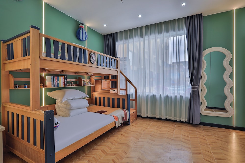 The hotel is very good, the environment is clean, the service is warm and attentive, very careful to prepare toothbrushes, toothpaste, slippers and so on for children, the toiletries for adults are also very complete, shampoo, shower gel and hair dryer are very useful. The design concept of the hotel is also very loving. There is a pair of love swimming pools on the entrance platform, which symbolizes heart to heart. There are not only children's exclusive castle rooms and Disney theme character rooms, but also theme princess skirts for children around their respective themes.Room names such as who is together, gratitude and surprise are also very warm and sunny, full of meaning of harmony and beauty. We stayed in the family room, which not only has an adult bedroom, but also has an exclusive building block entertainment area for children. Adults and children are very happy and satisfied. Not only that, the hotel also provides free shuttle service to Pudong Airport and Disney shuttle service, which is very thoughtful and convenient. Also, there are many food courts near the hotel, and we ate barbecue snacks near the hotel after we came back from Disney. A very satisfying experience. Would stay here again. 💕