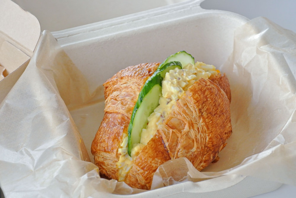 朝食はサンドイッチ、スープ、惣菜、果物のテイクアウト形式なので、ちょっと寂しい。