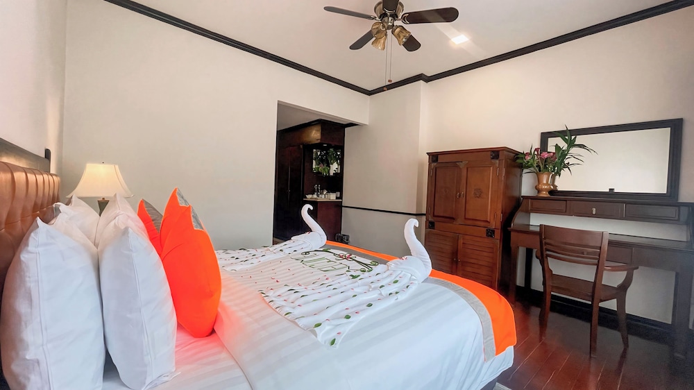 Absolutely top-notch experience! From the fantastic room to the wonderful staff, breakfast, service, and pool, everything was outstanding. Conveniently located just a couple of kilometers from town, with a $2 tuk-tuk ride. Utilize their excellent five stars hotel tuk-tuk driver Samsang, who goes above and beyond. The hotel sends him free to the airport or bus station be sure to tip him generously. Siem Reap is a must-visit destination.