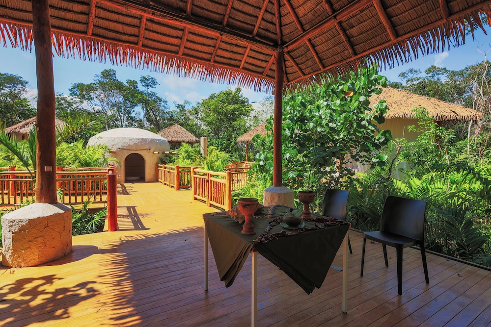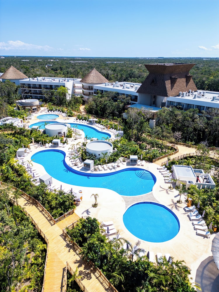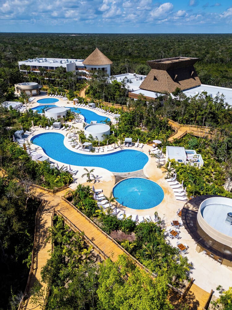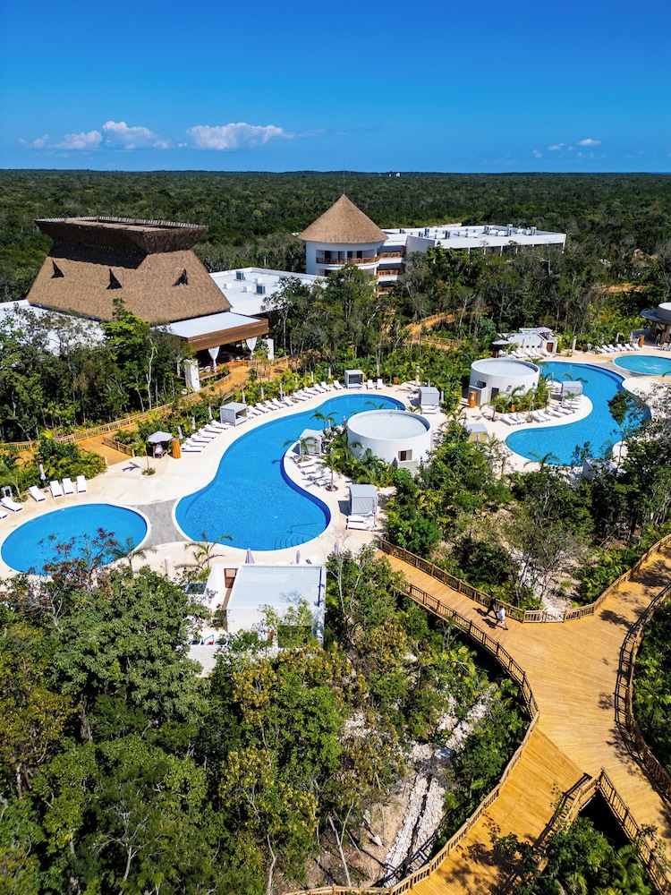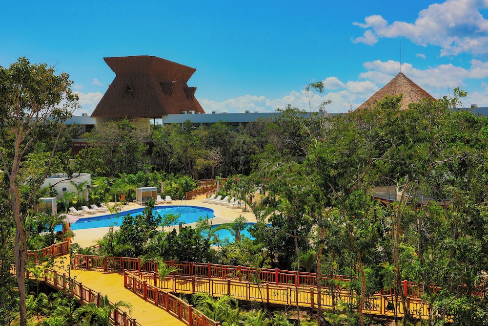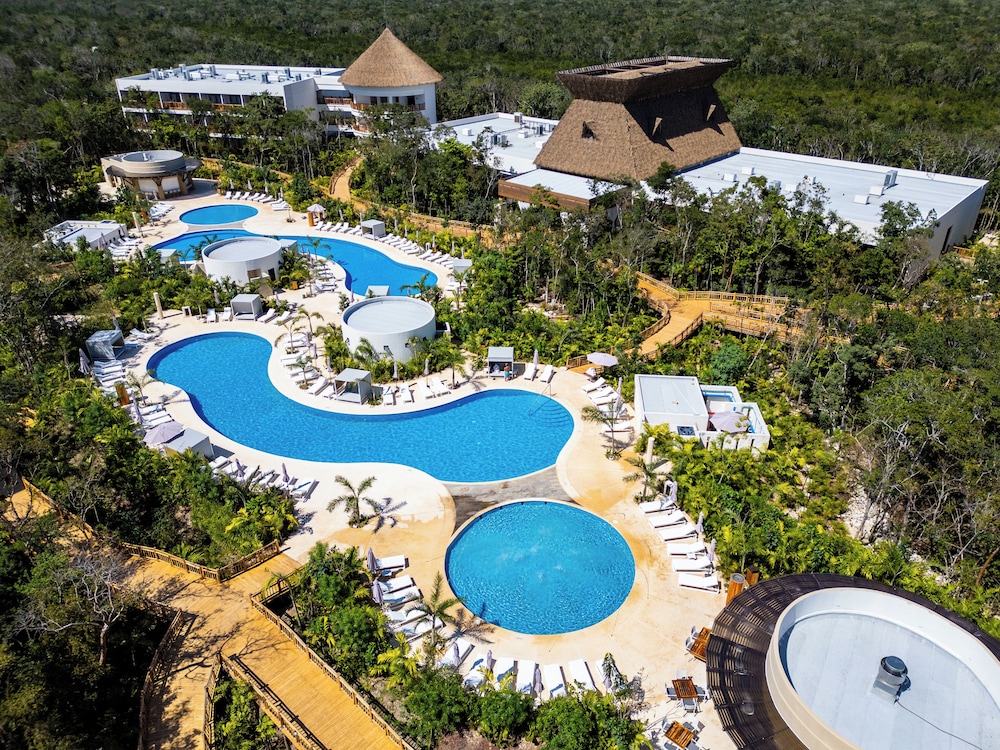 Ubicado en un lugar precioso, las instalaciones magnificas, una experiencia excelente acompañada de viajar en el Tren Maya, te llevan de la estación al hotel en carros eléctricos para el cuidado del medio ambiente ya que esta ubicado en el parque el Jaguar donde esta la zona arqueológica devTulum.