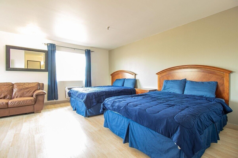 The staff was awesome so I’m sorry to leave a poor rating as it’s not a reflection of them. The volume button was busted on the tv, there was mold in the bathroom, you could literally see outside through the gap next to the AC unit (which was obnoxiously loud, like a seat over the engine of an airplane), there was exposed copper wire on the light fixture, everything was plugged into a surge strip presenting a fire hazard, cold tile floors throughout, the pillows were about an inch thick and they had no extras, and the 2 beds in the room were completely different. One was a pillow top memory foam mattress while the other one was a 4-inch thick crappy spring mattress that barely sufficed for a crib mattress. The bed rolled when you moved and squeaked if you so much as lifted a finger, keeping us up all night. Our backs are in serious pain. Yes the room was cheap, but it needs some serious TLC. Again, the staff was super nice, the room though was pretty terrible.