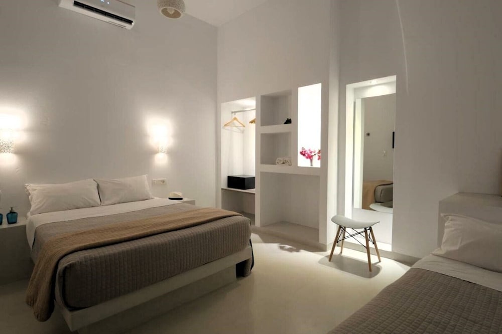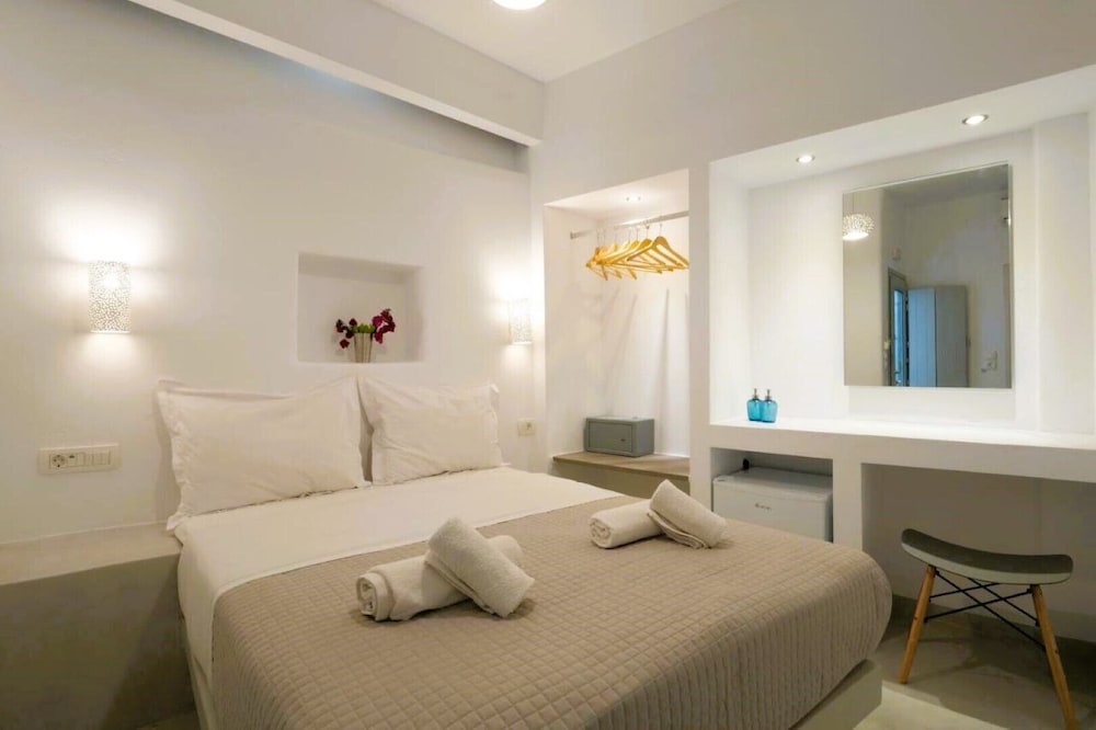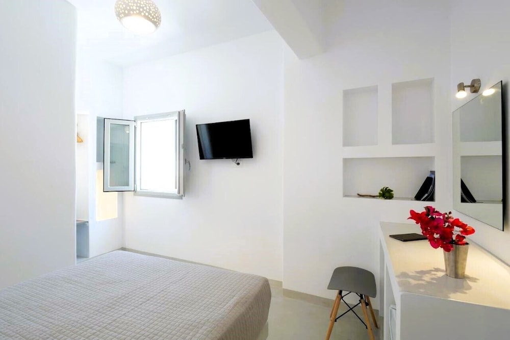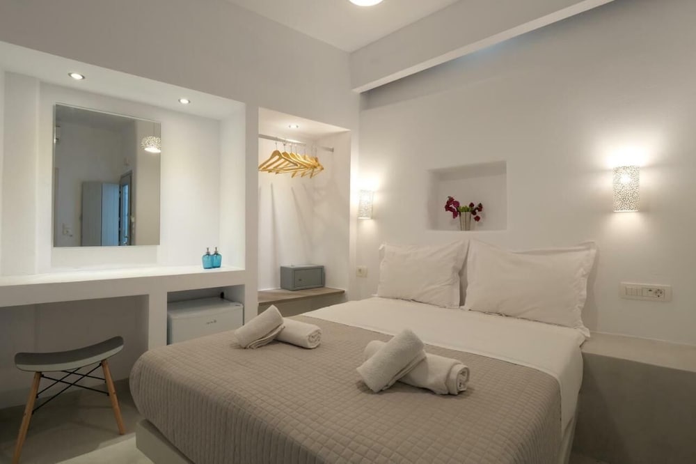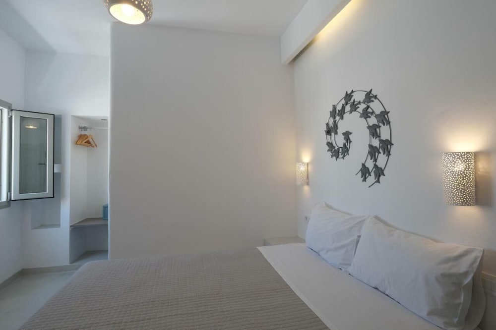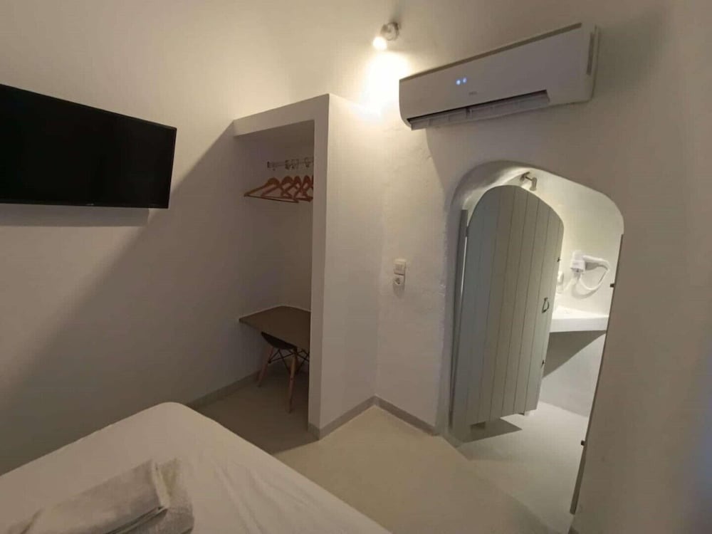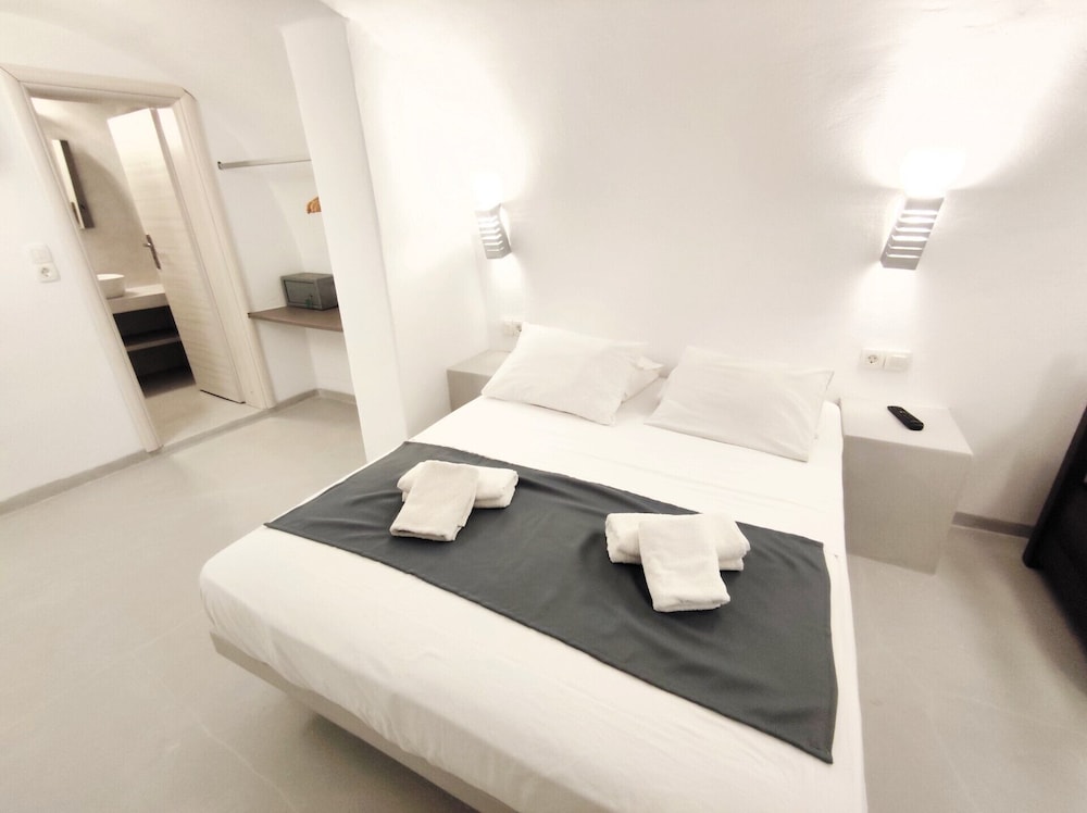 The suite we stayed in was not well maintained. The AC unit started dripping when we turned it on. It was repaired the same day thankfully. Hairdryer in the bathroom was not working. Thank fully had a substitute. Lamp shade on the right side of the bed was missing, left side was broken. One light bulb in bathroom vanity burnt out. Hand hand shower unit was falling apart. The location was convenient being close to the heart of Fira. Ephraim the front desk person was very helpful and tried to do what he could to make our stay the best and resolved issues like the leaking AC. The photos posted do not resembled reality.