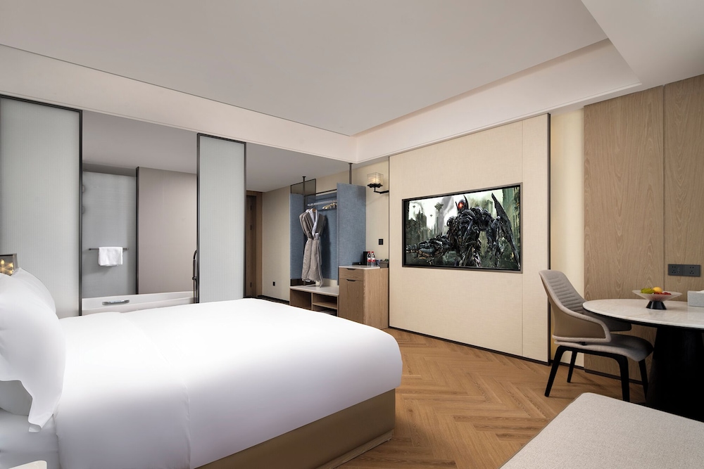 This stay experience was really great. The room was clean and tidy, and the bedding was comfortable—having two pillows of different materials was a nice touch. The bathroom had two drains, which solved the common problem of slow drainage in many hotels. However, there was no place to hang clothes at all, which needs improvement. As a newly opened hotel, the facilities are quite new; my daughter really liked the gym and the restaurant. The afternoon tea and midnight snacks were warm and thoughtful, giving a cozy, home-like feeling. Parking was convenient, and it’s a hotel with great value for money around Panyu.