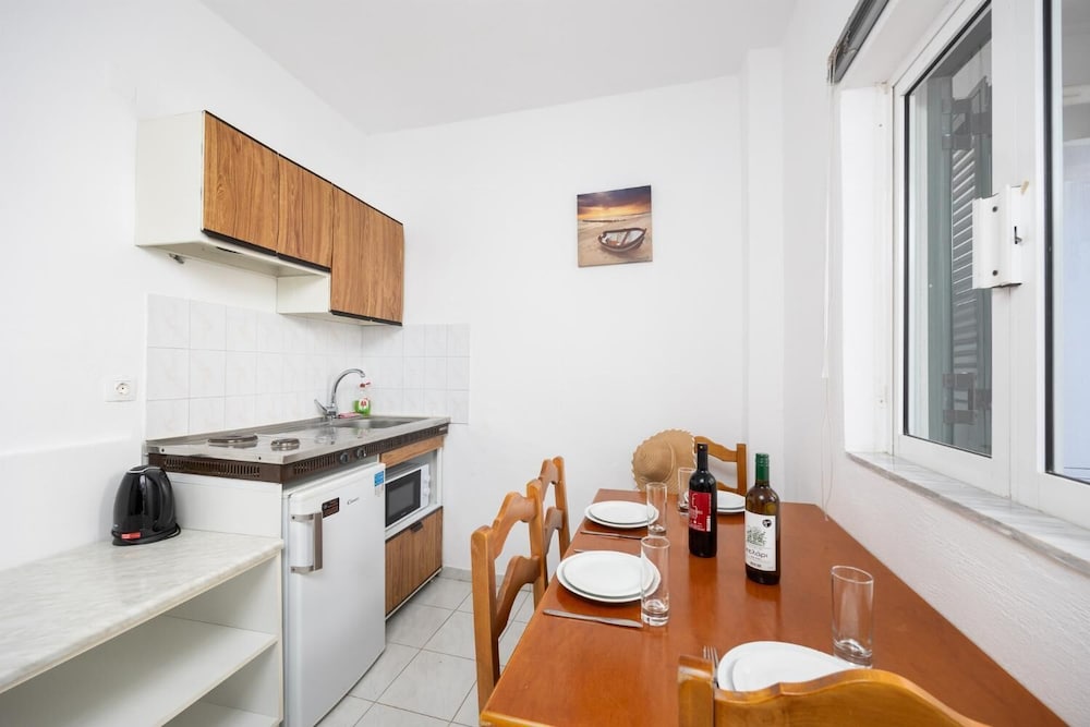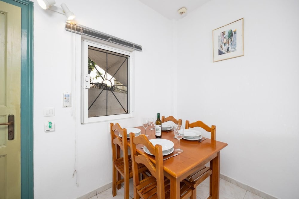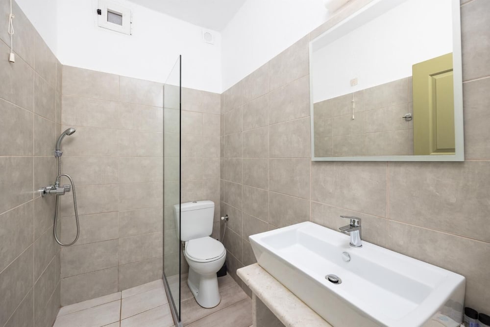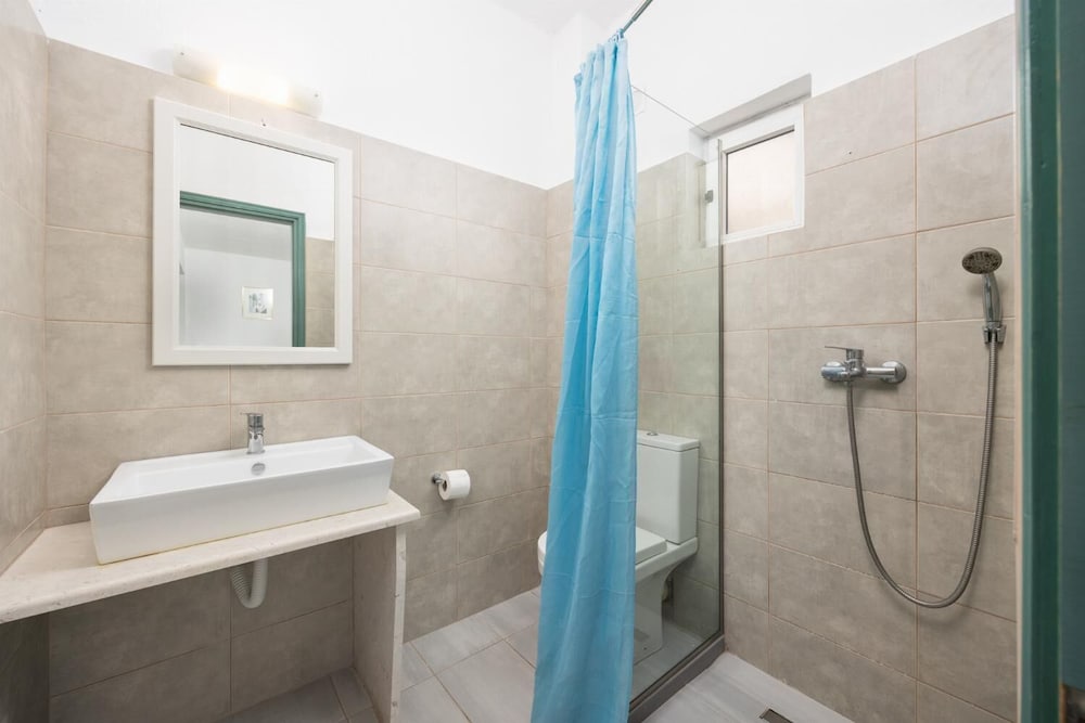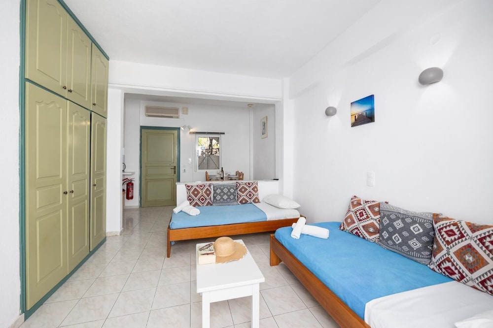 Lovely clean, quiet property with great pool area a stones throw from the beach at Nissaki. My apartment was spacious with a huge terrace and view of the sea. The kitchen is basic with a kettle, fridge, 2 ring hob and microwave but enough utensils and crockery etc. to make it work. My only recommendation would be to have a light directly in the kitchen as it’s not very well illuminated when trying to cook in the evening! Service was fantastic -Ekiria (?) looked after me very well and made the best freddo coffees 😊