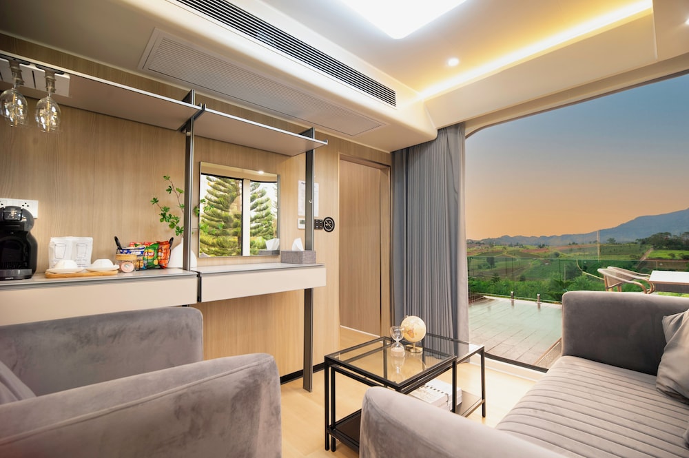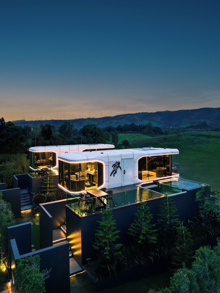 Very unique experience. I’ve never been in a space ship, but that’s probably what it would be like. Ultra hi tech pod. Everything was electronic, from the toilet to the curtains. Even a skylight another bed to watch the stars. All the movie streaming from a ceiling projector. What a view! So lucky to see the low hanging fog against the lush green mountains in the morning, A delicious breakfast delivered to the pod exactly when we requested. Incredible little staff that didn’t miss any details. Definitely booking another stay in the future