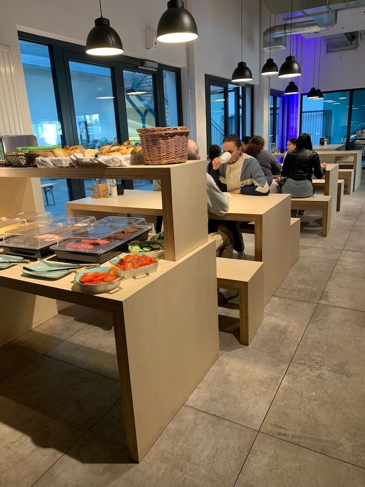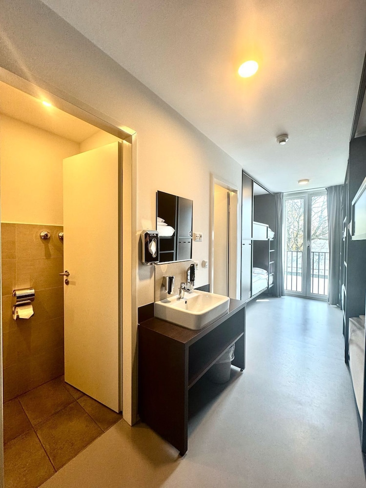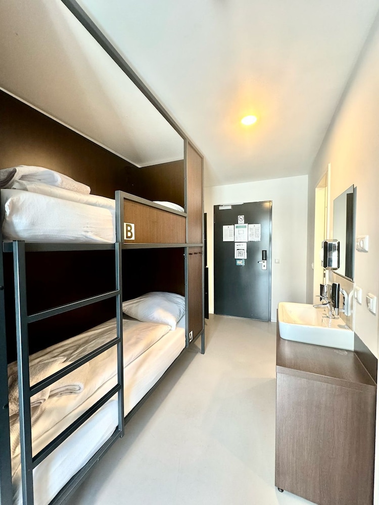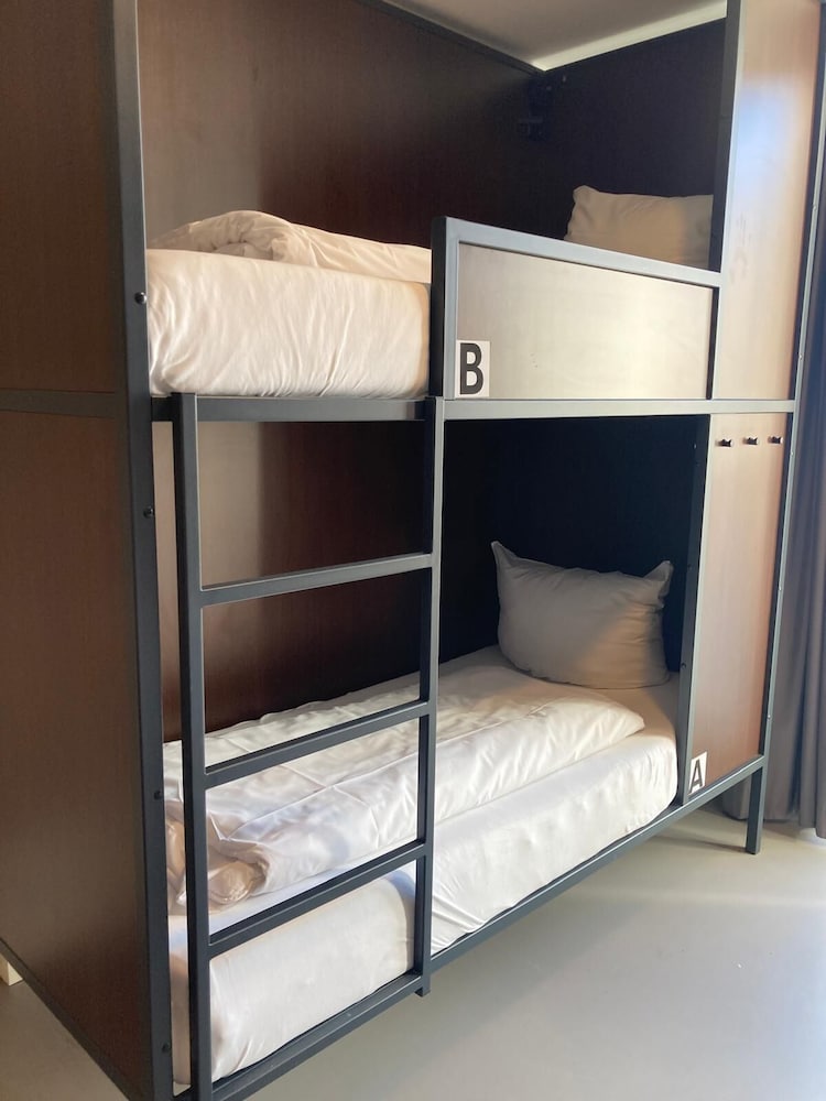 We ended up with a strange bunk bed room (sold as some kind of family room/room that sleeps more than two) that had no tables or chairs and laminated floors. Lockers were in there so clearly not a normal guest room but several were damaged. Lamps at most beds were not working which was awkward. Floor under the beds hadn’t been cleaned in a while. Bathroom had soap dispensers not wall mounted but just lying around. Old toilet paper roll was behind the door. Not impressed. Oh and there was a 3 inch hole in the middle of the floor in the room that was taped over with clear tape. When we got there, the card reader machine was also broken so we didn’t even get a key card but the staff went to let us in. Wut?