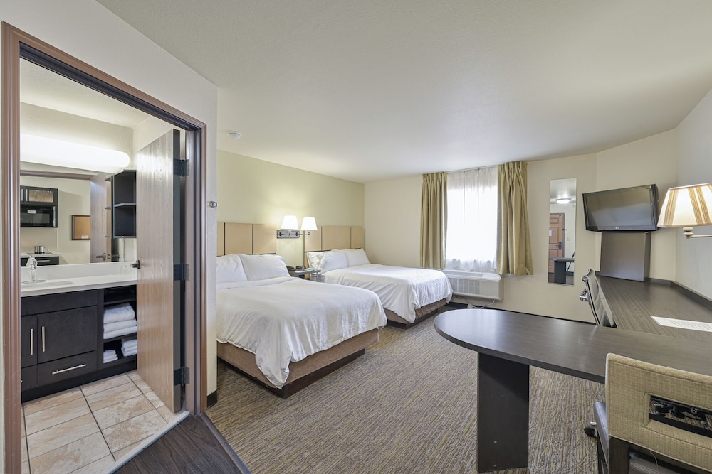 Choose from 72 well-appointed guestrooms, each featuring kitchens equipped with full-sized refrigerators and stovetops, ensuring you feel right at home during your stay.