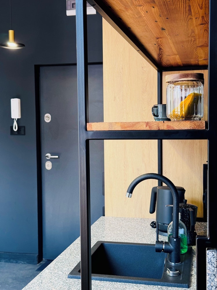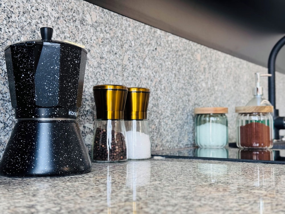 Very nice brand new aparthotel. Clean and quiet. Kitchen nicely equipped and stacked with all essentials. Brand new very comfortable mattress. Parking and washer is for sure a plus. You check in virtually but if you need any help there is always someone. The lady who takes care of the guests is very responsive and super helpful.