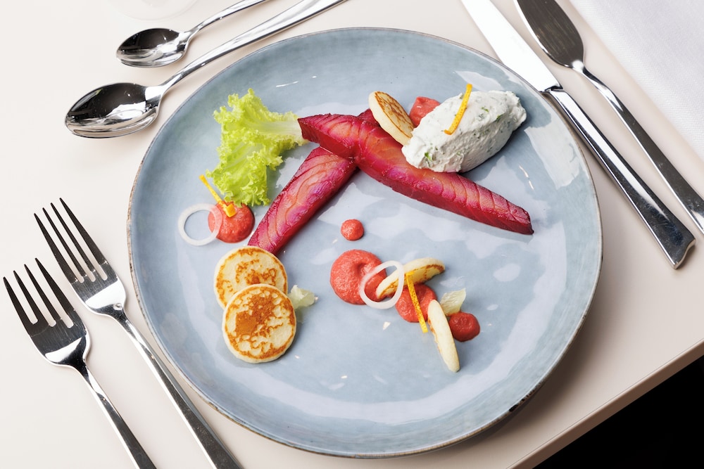 Location is ideal and only a short distance to main centre where there are very good restaurants although quite limited in number and not all open for food in the evening. We used the hotel as a base to visit the Normandy beaches and it was ideal for that purpose.